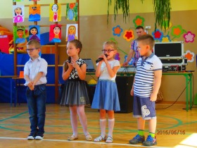 16 czerwca 2016 roku odbyła się w naszej szkole uroczystość z okazji Dnia Mamy i Dnia Taty. Jako pierwsze zaprezentowały się dzieci z oddziału przedszkolnego. W przedstawieniu pt. „Chodzą Mamy” oraz „Tatusiowie” ukazały jak wielkie i pełne miłości jest serce mamy oraz zmagania tatusiów podczas prac domowych. Następnie na scenie wystąpili uczniowie z klasy I, którzy pokazali jakie są marzenia mamy i taty. Kolejną grupą były dzieci z klasy II, które poprzez grę na instrumentach, śpiew piosenek i recytację wierszy ukazały swą miłość do Mamy i Taty. Natomiast uczniowie z klasy III pokazali w swoim przedstawieniu, że pomimo problemów dnia codziennego w rodzinie zawsze znajdziemy wsparcie.