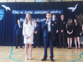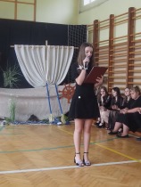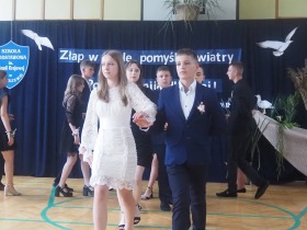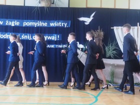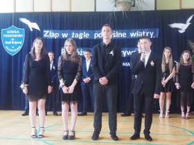 Uroczystość rozpoczęła się od tradycyjnego Poloneza i recytacji wierszy, w której wzięli udział uczniowie klasy VIII. Ich taniec i eleganckie stroje dodawały uroku uroczystości. To był moment, kiedy mogliśmy z dumą powiedzieć "Do widzenia" naszej szkole.