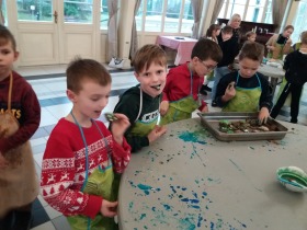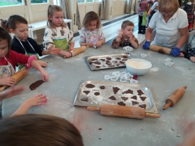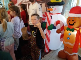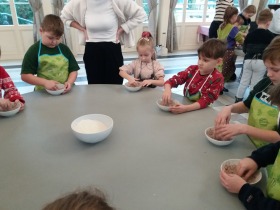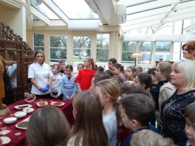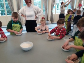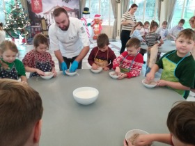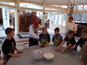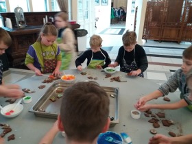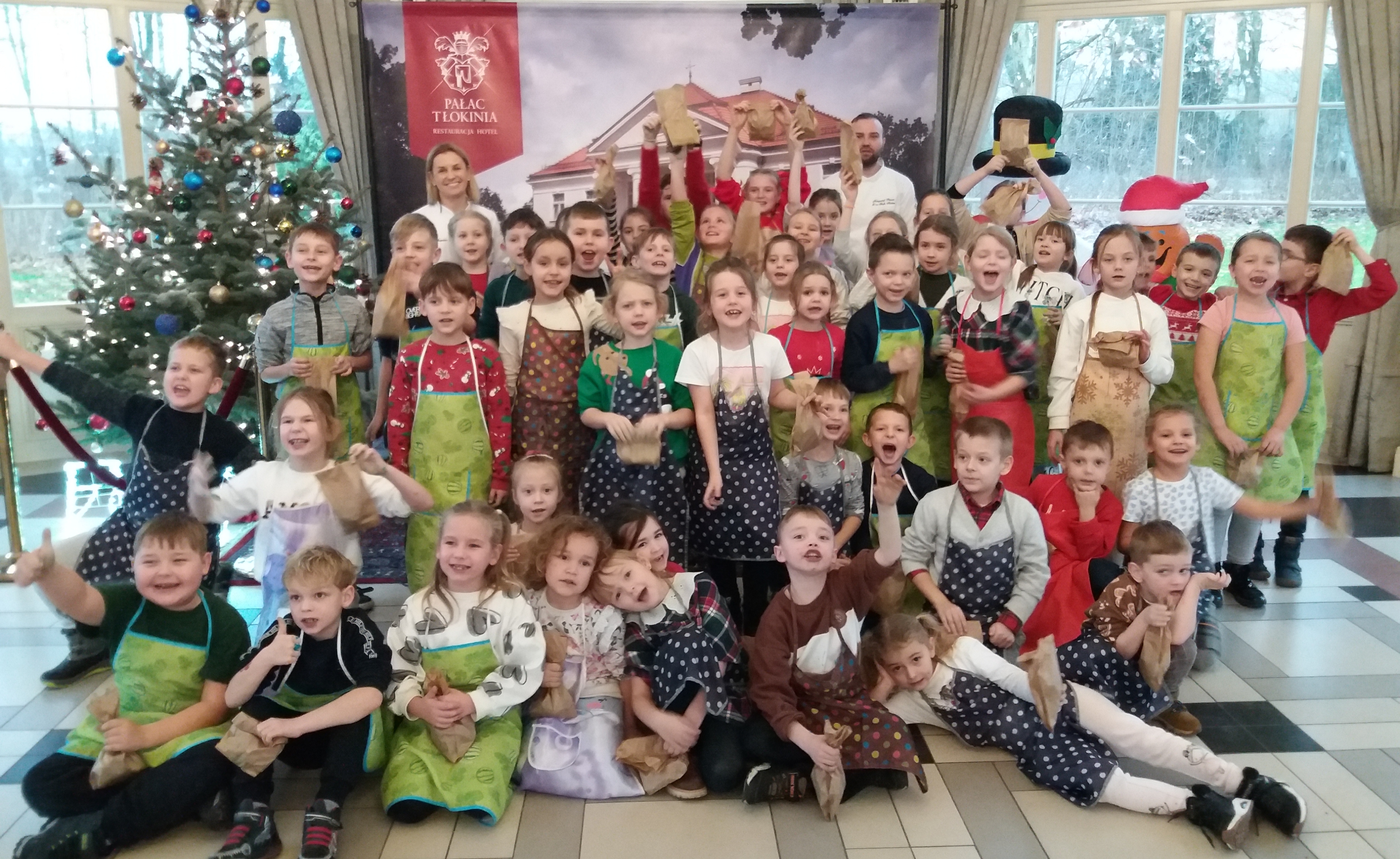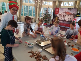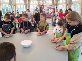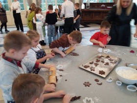We wtorek 10 grudnia br. dzieci z oddziału przedszkolnego oraz klas: I, II i III uczestniczyły w warsztatach piernikowych w Pałacu Tłokinia. Nasi uczniowie dowiedzieli się z jakich składników piecze się pyszne pierniczki. Następnie samodzielnie zagniatali ciasto i wycinali różne kształty. Po upieczeniu, dzieci ozdabiały swoje pierniczki kolorowym lukrem oraz posypką. Najmłodsi mieli przyjemność zobaczyć pałacową kuchnię oraz zwiedzić przepiękne wnętrza Pałacu Tłokinia. Dowiedzieli się również wielu ciekawostek na temat pałacu oraz rodziny Chrystowskich.