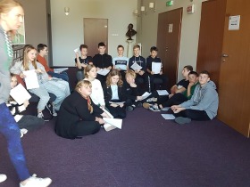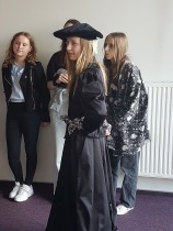 Dnia 11 października 2022 roku uczniowie klasy 7 i 8 uczestniczyli w czterogodzinnych warsztatach teatralnych: „Konwencje i sposoby opowiadania w teatrze”. Przyjrzeli się z bliska ludziom teatru oraz poznali tajniki ich pracy. Wcielali się w rolę reżysera, aktora, scenografa, operatora świateł, realizatora dźwięku czy kostiumografa i próbowali opracować fragment szekspirowskiego dzieła pod tytułem „Makbet”. Ponadto przypomnieli sobie gatunki teatralne. Podczas zajęć wykorzystywane były narzędzia storytellingowe, mapy myśli, zadania z kreatywnego pisania, żeby porozmawiać o tym, czym są i do czego służą konwencje. Dużą radość sprawiło uczniom dobieranie kostiumów do wcześniej wybranych i scharakteryzowanych postaci. Atrakcyjne było także ich przymierzanie i prezentowanie przed grupą oraz granie na różnego rodzaju instrumentach muzycznych i nagrywanie ścieżki dźwiękowej, będącej odzwierciedleniem wyświetlanego fragmentu filmu. Uczniowie uczyli się uważnego słuchania oraz wchodzenia w słowne interakcje uzależnione od danych sytuacji. Zajęcia były naprawę ciekawe, inspirujące, wyzwalające twórcze myślenie oraz kreatywność.
