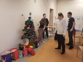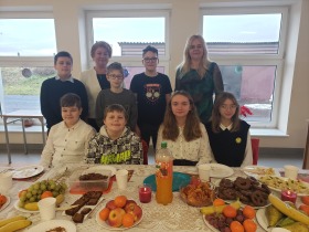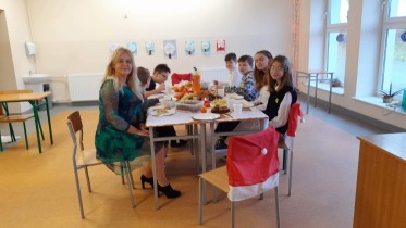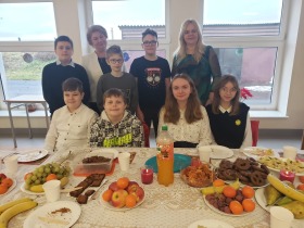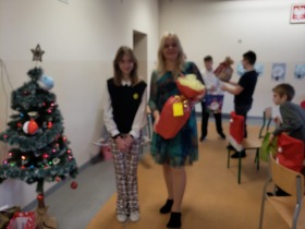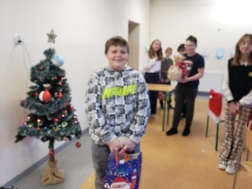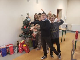 Na stołach zamiast zeszytów i książek pojawiły się potrawy przygotowane przez uczniów i rodziców m.in. pierogi z kapustą i grzybami, kapusta z grochem, ryba po grecku, makiełki, ciasto brownie, piernik, sałatka warzywna i owoce. Pod choinką pojawiły się prezenty. Śpiewaliśmy kolędy, łamaliśmy się opłatkiem. Był dziś również czas na swobodne rozmowy, na integrację, na gry i na budowanie relacji. Wigilia to oczekiwanie na Boże Narodzenie to czas nadziei i radości. Chcielibyśmy aby ta nadzieja i ta radość w sercu towarzyszyły nam przez cały okres Świąt i także w każdym kolejnym dniu. Życzymy Państwu i sobie wytrwałości w pielęgnowaniu nadziei i radości, która dziś gości naszych sercach.
