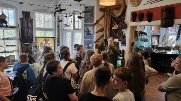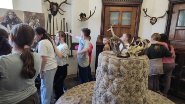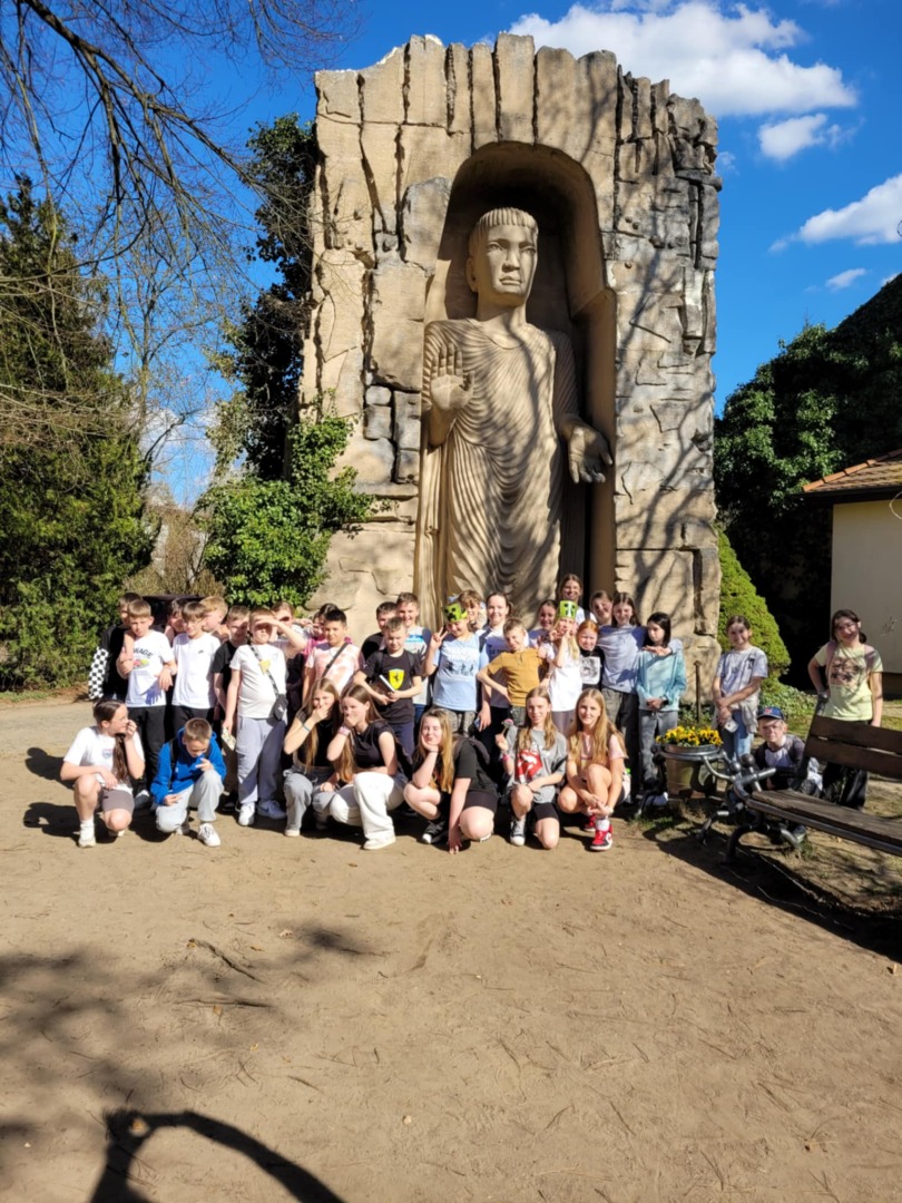 Dnia 4 kwietnia uczniowie klas 4-6 z wychowawcami wybrali się na wycieczkę po Wielkopolsce. Odwiedzili zamek w Kórniku - jeden z najciekawszych, najwspanialszych obiektów okolic Poznania. Od 2011 roku znajduje się on na liście Pomników Historii. Wychowankowie wraz z opiekunami zwiedzili zamek, podziwiali dziedzictwo Działyńskich i Zamoyskich w tym bogate wnętrza oraz drogocenny księgozbiór biblioteki kórnickiej, m.in. dzieła Adama Mickiewicza czy Juliusza Słowackiego. Dowiedzieli się, że nocami po zamku i jego ogrodach przechadza się była właścicielka Teofila z Działyńskich, zwana Białą Damą. Podczas zadań w escape-roomie uczniowie poznali historię powstania pierwszych książek, obejrzeli starodruki i unikatowe wydanie "Trenów" Jana Kochanowskiego czy dzieło Mikołaja Kopernika. Następnie udali się do Puszczykowa do Muzeum Arkadego Fiedlera-autora powieści pt. "Dywizjon 303". Oprowadzani byli przez wnuka wybitnego pisarza i podróżnika. Obejrzeli oryginalne eksponaty z obu Ameryk, Afryki i Azji. Najciekawszym punktem zwiedzania był statek-replika "Santa Maria", na której Krzysztof Kolumb dopłynął do Nowego Świata. Wszyscy zadowoleni i bezpieczni wrócili do domu.