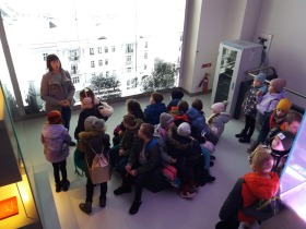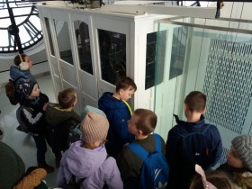 W pierwszej kolejności dzieci odwiedziły Ratusz. Na miejscu serdecznym uśmiechem i życzliwością przywitali nas pracownicy. W piwnicach, na korytarzach oraz kondygnacjach wieży mieliśmy okazję oglądać ekspozycję multimedialną poświęconą dziedzictwu historyczno – kulturowemu Kalisza i regionu. Uczestnicy dzielnie wspinali się po krętych schodach, by na tarasie widokowym podziwiać panoramę współczesnego Kalisza. Opowieści Pani Przewodnik były bardzo ciekawe, a widoki nieziemskie. Na zakończenie dzieci podziękowały pracownikom kaliskiego Ratusza oraz wręczyły własnoręcznie wykonany plakat.