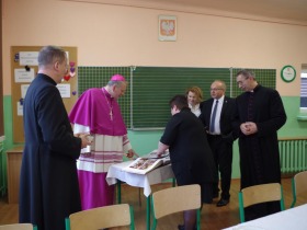 7 marca 2018 roku naszą szkołę odwiedził JE Ks. Biskup Łukasz Buzun. Po powitaniu przez Panią Dyrektor, przedstawicieli Urzędu Gminy, Rady Rodziców i Samorządu Uczniowskiego, wszyscy uczniowie przywitali Księdza Biskupa radosną piosenką. Dzieci bardzo uroczyście i poważne w tym dniu przygotowały pytania na które Ksiądz Biskup chętnie odpowiadał. Dzięki temu dowiedzieliśmy się, co lubił gdy był małym chłopcem i jak wygląda jego codzienność. Uczniowie pod opieką Pani Katechetki przygotowali także wiersze.