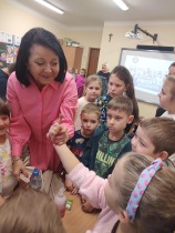 W ramach projektu edukacyjnego Wojewódzkiej Stacji Sanitarno- Epidemiologicznej w Poznaniu „Mam zdrowe zęby!”, przeprowadzono pogadankę z wykorzystaniem prezentacji multimedialnej. Uczniowie dowiedzieli się jak prawidłowo dbać o higienę jamy ustnej oraz jakie produkty włączyć do swojej diety, by zachować zdrowy "uśmiech". Ciekawym punktem spotkania był instruktaż prawidłowego mycia zębów przy pomocy modelu szczęki. Dzieci chętnie odczytywały wskazówki jak prawidłowo przeprowadzić szczotkowanie i ilustrowały działanie pod czujnym okiem Pań prowadzących zajęcia. Omówiono zasady dbania o higienę jamy ustnej oraz co trzeba robić, by zęby były zdrowe i mocne. Dzieci uważnie słuchały i zadawały wiele interesujących pytań. Przeprowadzono również warsztaty dotyczące prawidłowej higieny rąk. Dzieci miały możliwość dostrzec jak wiele bakterii i zarazków jest wokół nas oraz jak skutecznie można je zwalczyć poprzez prawidłowe mycie rąk. Na zakończenie spotkania każdy z uczestników otrzymał broszurę „Mam zdrowe zęby”, kalendarz, dyplom oraz magnes z logo projektu, ufundowane przez Wojewódzką Stację Sanitarno- Epidemiologiczną w Poznaniu. Dziękujemy za wspaniałą lekcję.