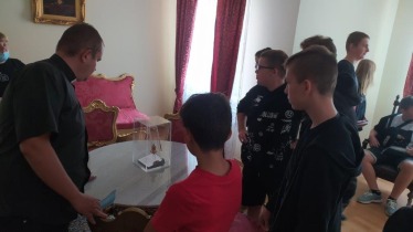 Następnie udaliśmy się do Radia Rodzina, katolickiej stacji radiowej diecezji kaliskiej nadającej swój program na częstotliwości 103,1 FM. Mieliśmy okazję poczuć się jak prawdziwi spikerzy radiowi. Ukazano nam tajniki radia oraz pokazano, jak korzystać z zamieszczonego tam sprzętu. Później ksiądz Damian oprowadził nas po seminarium duchownym, gdzie między innymi mogliśmy zobaczyć pokoje papieskie, w których przez trzy godziny przebywał i odpoczywał Jan Paweł II podczas swojej pielgrzymki w 1997 roku.