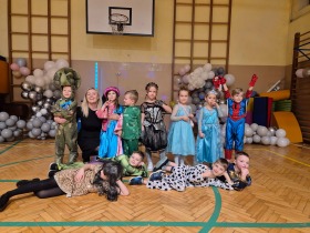 W sali gimnastycznej, udekorowanej przez Szkolne Koło Wolontariatu oraz Radę Rodziców zapanował radosny gwar. Młodsi uczniowie przybyli przebrani za różnorodne postacie z bajek, superbohaterów, zwierząt i postaci historycznych. Widać było, że dzieci włożyły wiele wysiłku, by ich przebrania były jak najbardziej oryginalne.