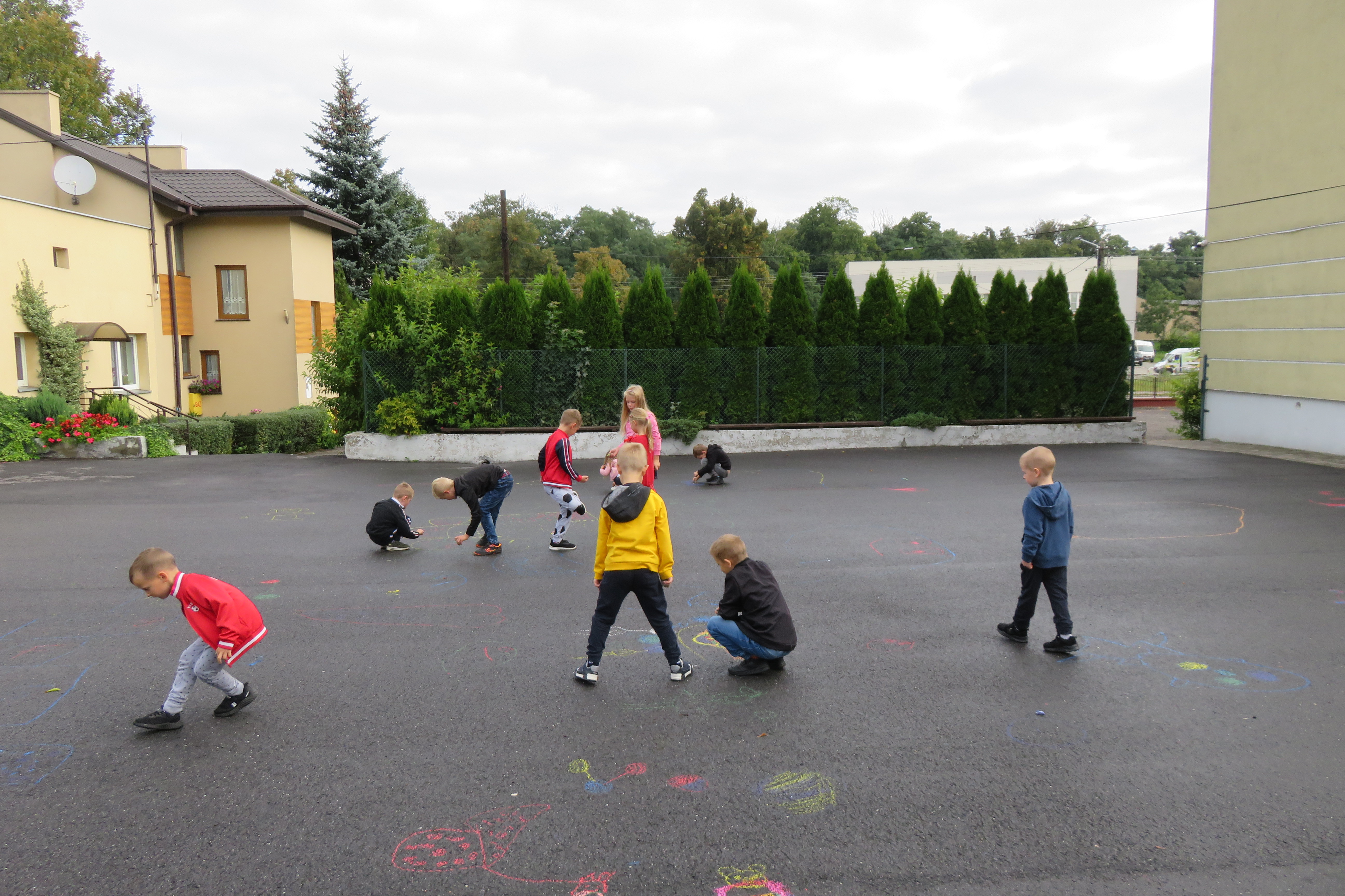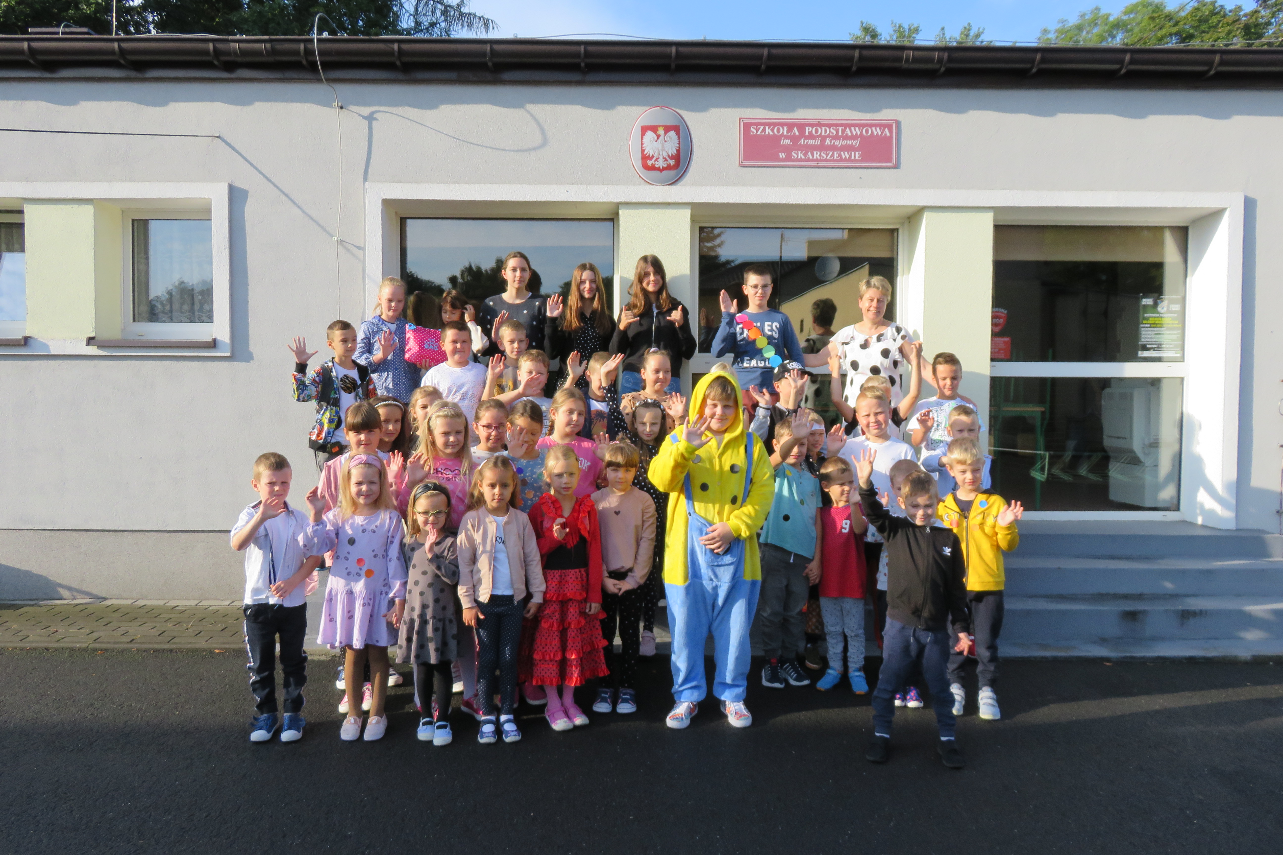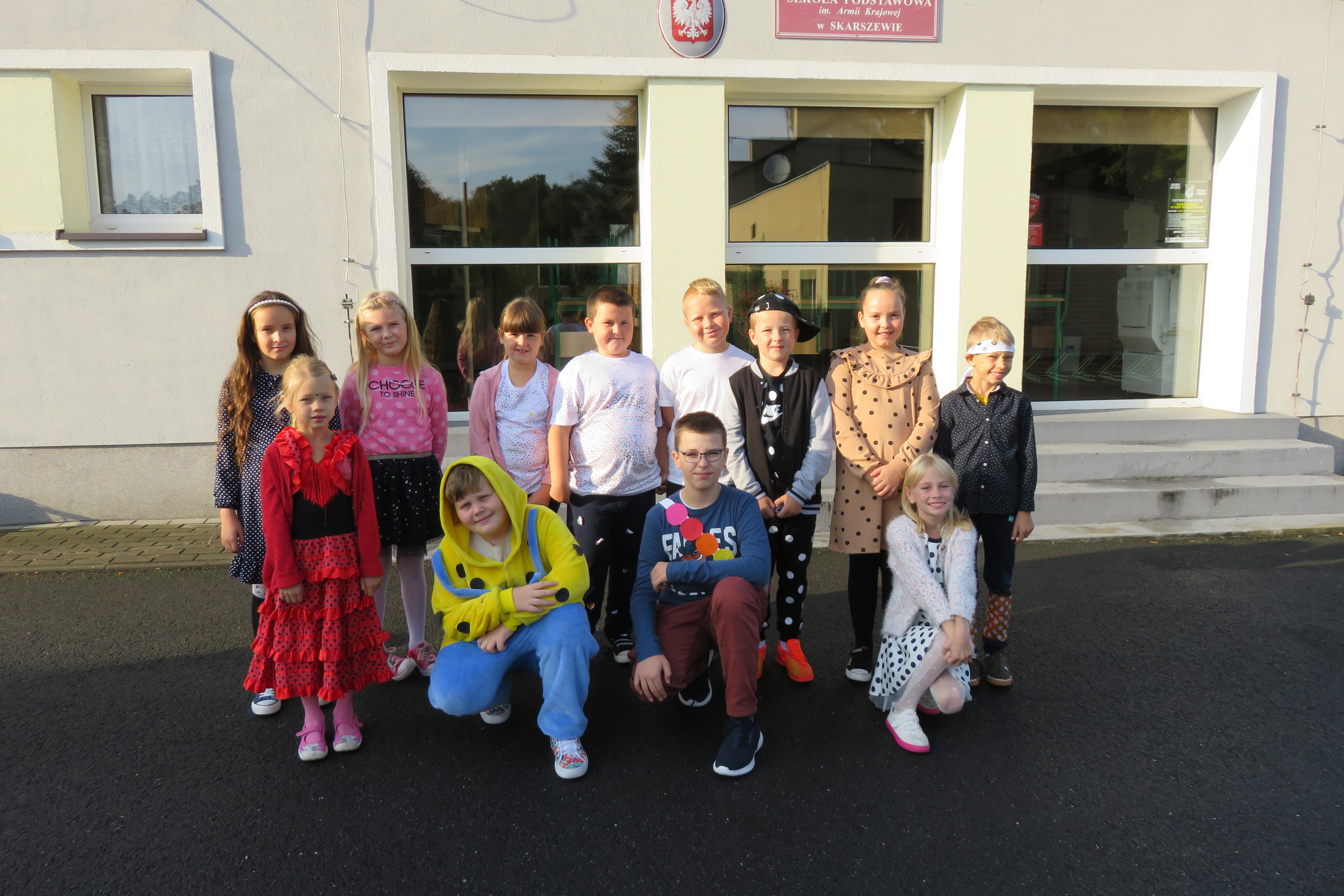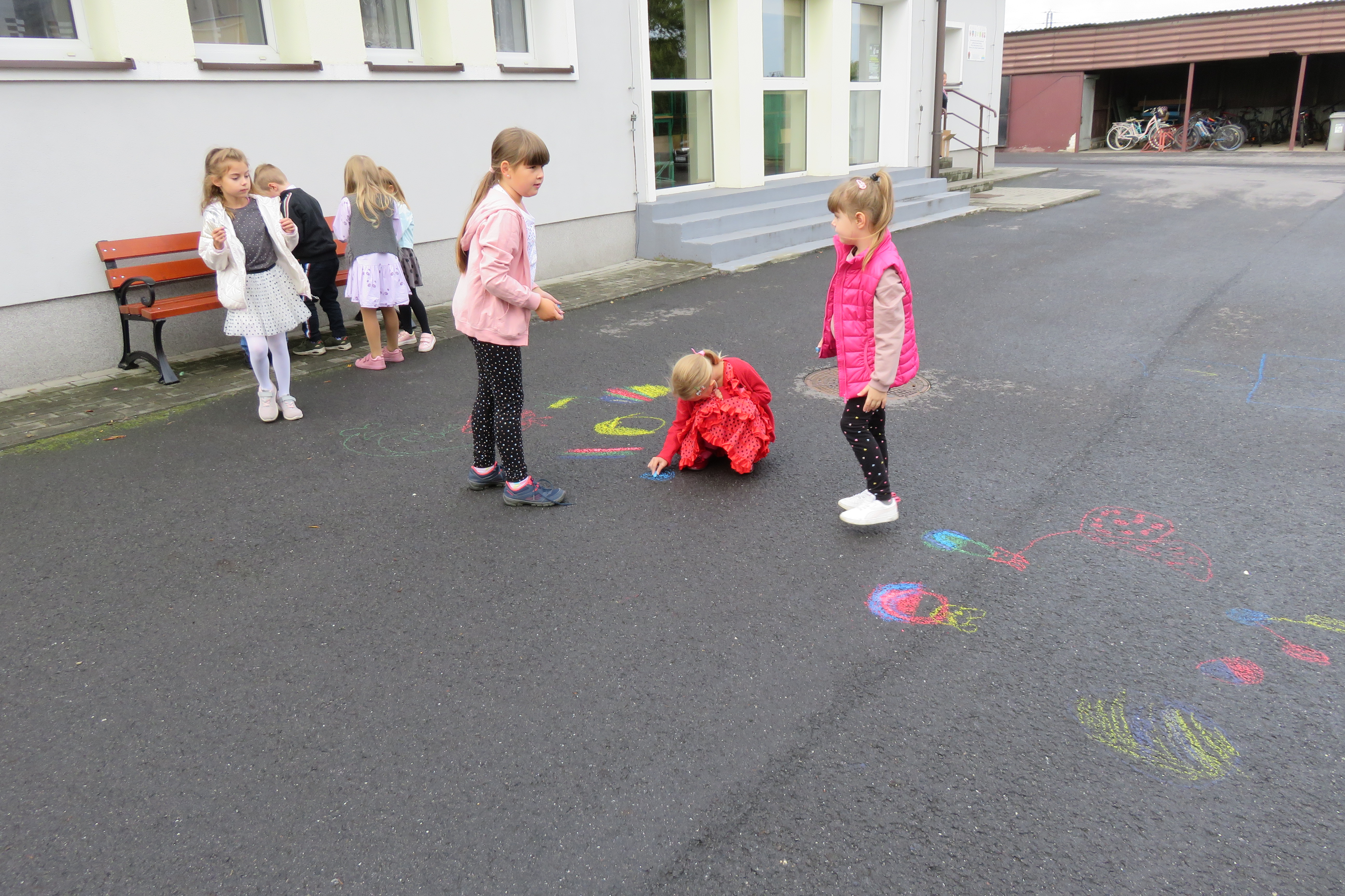 W dniu 15 września po raz kolejny obchodziliśmy w naszej szkole „International Dot Day” czyli Międzynarodowy Dzień Kropki – święto kreatywności i zabawy kolorami. Nauczyciele klas 0-3 przygotowali wiele ciekawych zabaw i aktywności, które pomogły dzieciom odkrywać ich talenty artystyczne i pobudziły wyobraźnię. Najmłodsi milusińscy rysowali „swój kropkowy świat” i dekorowali plac przed szkołą kolorową kredą. Klasy 1-3 wycinały „kropkowe drzewka” , malowały „kropkowe zwierzątka” i kolorowały „kropkową tęczę”. Uczniowie klasy 3 otrzymali nawet dyplomy, bo przecież każdy z nas ma w sobie ukryty talent. Starsi uczniowie klas 4-8 przebierali się w stroje w kropki, wszyscy dobrze się bawili. Dużą niespodzianką był „Mionionek” z kl. 6, który pojawił się tego dnia wśród nas.