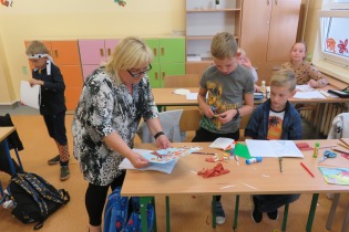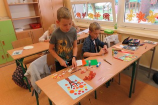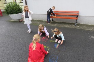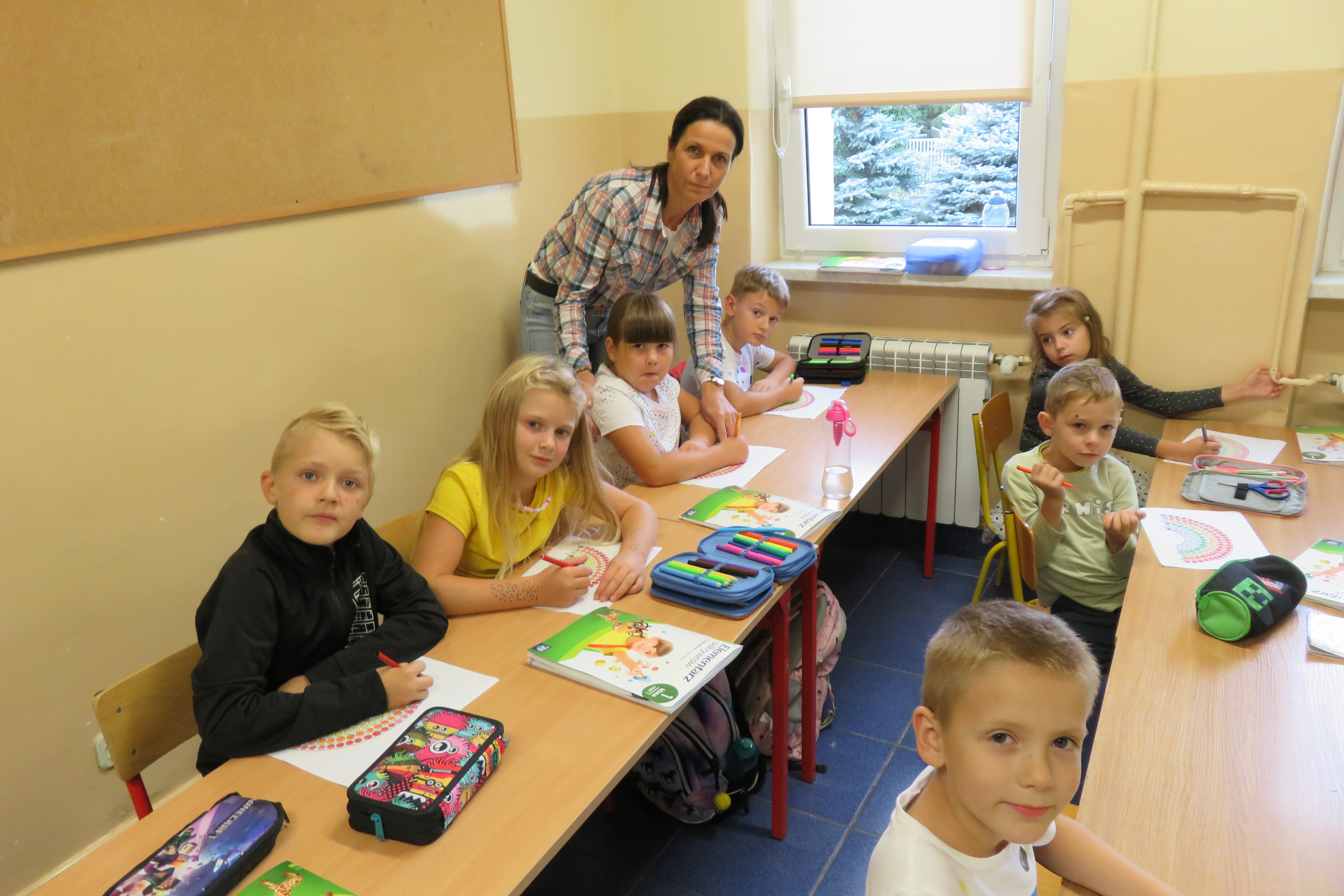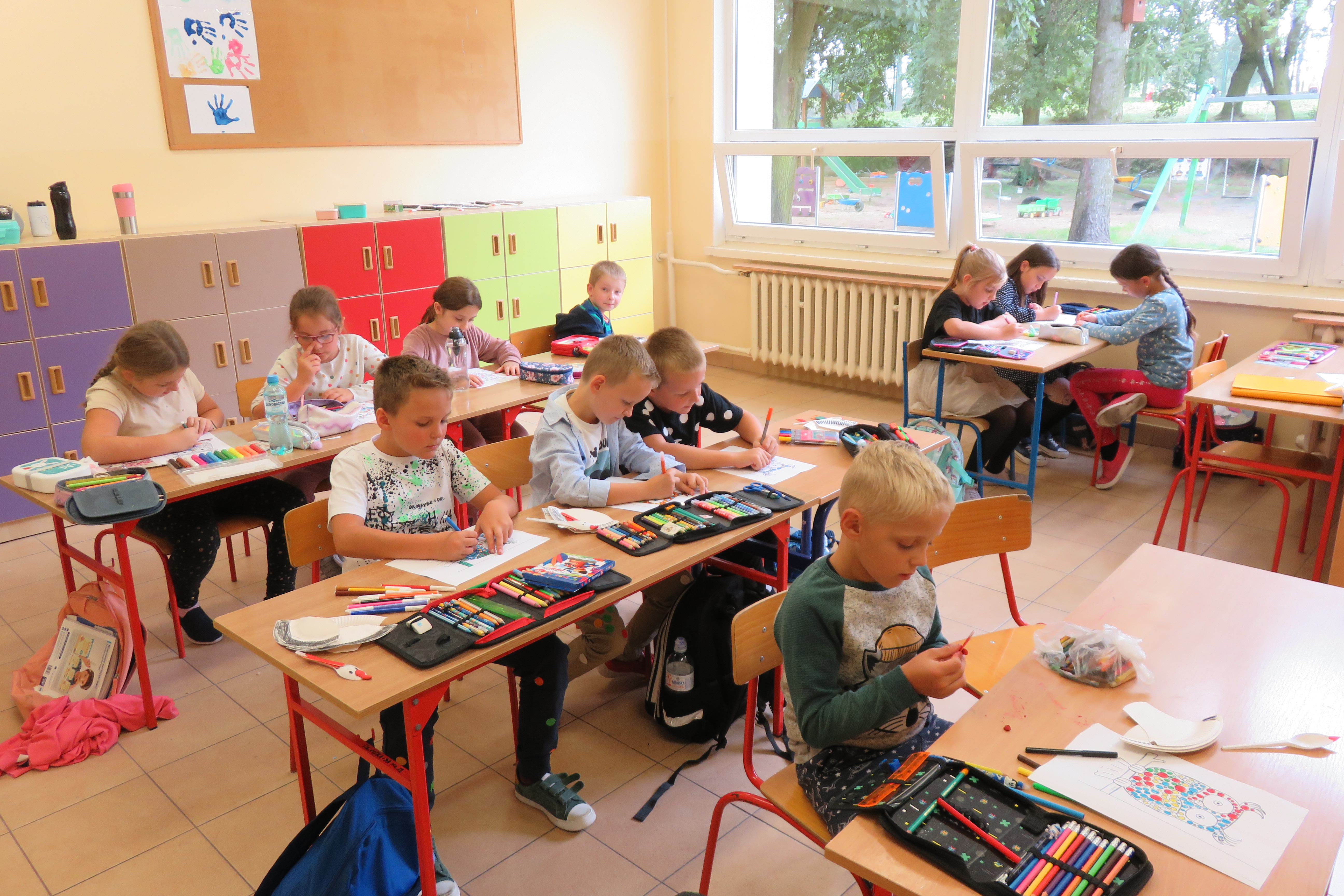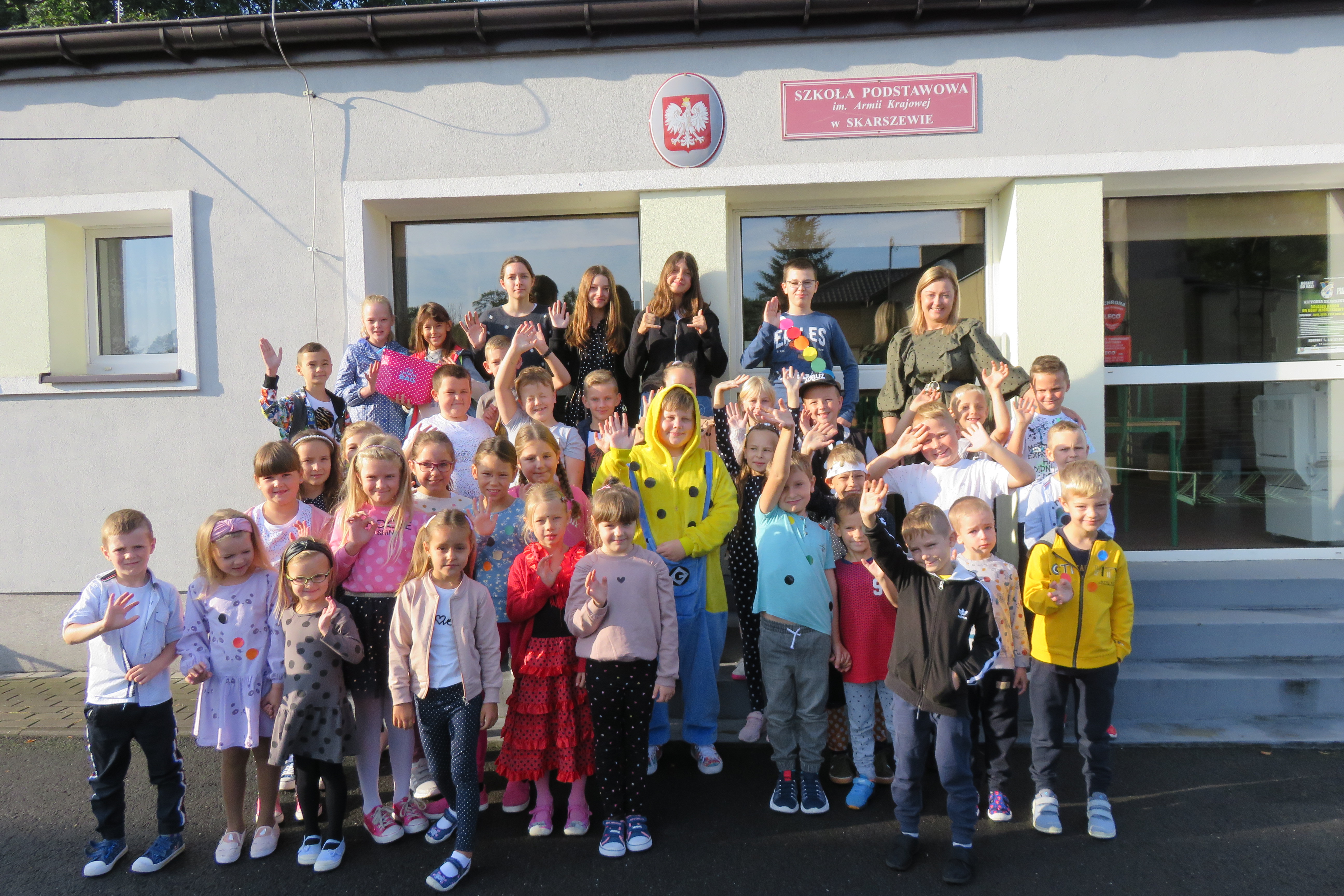 W dniu 15 września po raz kolejny obchodziliśmy w naszej szkole „International Dot Day” czyli Międzynarodowy Dzień Kropki – święto kreatywności i zabawy kolorami. Nauczyciele klas 0-3 przygotowali wiele ciekawych zabaw i aktywności, które pomogły dzieciom odkrywać ich talenty artystyczne i pobudziły wyobraźnię. Najmłodsi milusińscy rysowali „swój kropkowy świat” i dekorowali plac przed szkołą kolorową kredą. Klasy 1-3 wycinały „kropkowe drzewka” , malowały „kropkowe zwierzątka” i kolorowały „kropkową tęczę”. Uczniowie klasy 3 otrzymali nawet dyplomy, bo przecież każdy z nas ma w sobie ukryty talent. Starsi uczniowie klas 4-8 przebierali się w stroje w kropki, wszyscy dobrze się bawili. Dużą niespodzianką był „Mionionek” z kl. 6, który pojawił się tego dnia wśród nas.