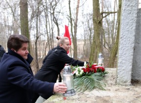 Kwiaty przy obelisku upamiętniającym rozstrzelanych żołnierzy w imieniu Miasta i jego mieszkańców złożyli prezydent Krystian Kinastowski, Tadeusz Skarżyński - przewodniczący Rady Miasta Kalisza oraz w imieniu społeczności szkolnej Szkoły Podstawowej im. Armii Krajowej w Skarszewie - dyrektor szkoły Magdalena Mikołajczyk.