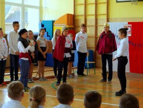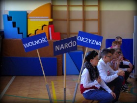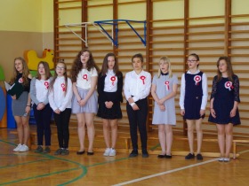 Po tym niezwykle podniosłym momencie nastąpiła równie uroczysta akademia. Uczniowie przypomnieli wydarzenia sprzed ponad 200 lat, pokazując, jak postępowym i nowoczesnym krajem była Rzeczpospolita. Pięknym recytacjom poezji patriotycznej towarzyszyły dźwięki piosenki „Witaj majowa jutrzenko!” oraz dekoracje, rekwizyty i stroje, które pomogły w zrozumieniu jakże ważnych, a zarazem trudnych treści.