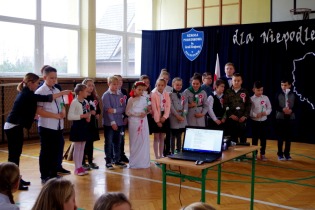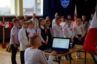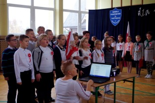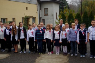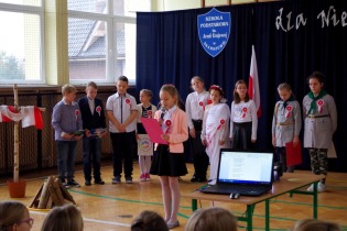 Na początku wszyscy odśpiewali Mazurka Dąbrowskiego podczas uroczystego wciągania flagi na maszt przez poczet flagowy. Następnie zaproszono uczniów i pracowników szkoły do przejścia na salę gimnastyczną, gdzie przywitano wszystkich uczestników obchodów i ponownie odśpiewano hymn w obecności pocztu sztandarowego. Akademię w tym roku przygotowali uczniowie klasy piątej, którzy recytowali wiersze i przypomnieli przemówienie Józefa Piłsudskiego z 1914 roku do żołnierzy Pierwszej Kompanii Kadrowej. Uwagę zwracała uczennica ubrana w białą szatę z biało-czerwonym wiankiem na głowie symbolizująca Polskę. Jednocześnie uczniowie poszczególnych klas przygotowali i odśpiewali pieśni żołnierskie, i tak: