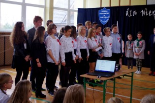 Dnia 9 listopada 2018 roku uczniowie naszej szkoły wzięli udział w uroczystej akademii z okazji rocznicy odzyskania przez Polskę niepodległości w 1918 r. Było to wyjątkowe święto, ponieważ upamiętniało setną rocznicę tego wydarzenia.