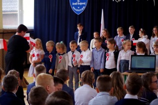 Na zakończenie akademii przewodniczący klasy piątej podziękował za udział w uroczystości. Zrobiono także pamiątkowe zdjęcia. Pani Dyrektor podziękowała młodym artystom za przybliżenie społeczności uczniowskiej Narodowego Święta Niepodległości.