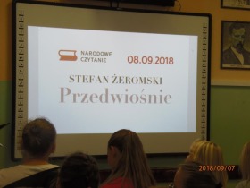 Nasza szkoła włączyła się w tą akcję poprzez wspólne czytanie przez Panią Dyrektor oraz uczniów szkoły fragmentów powieści.