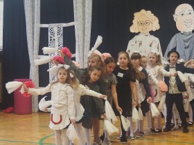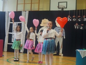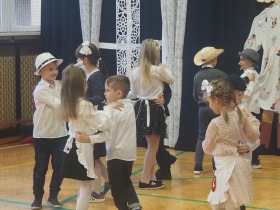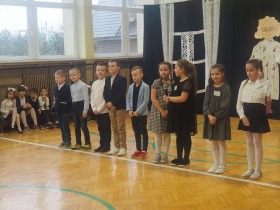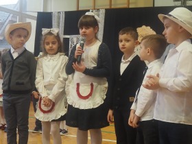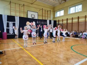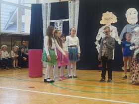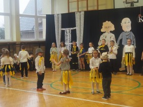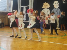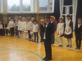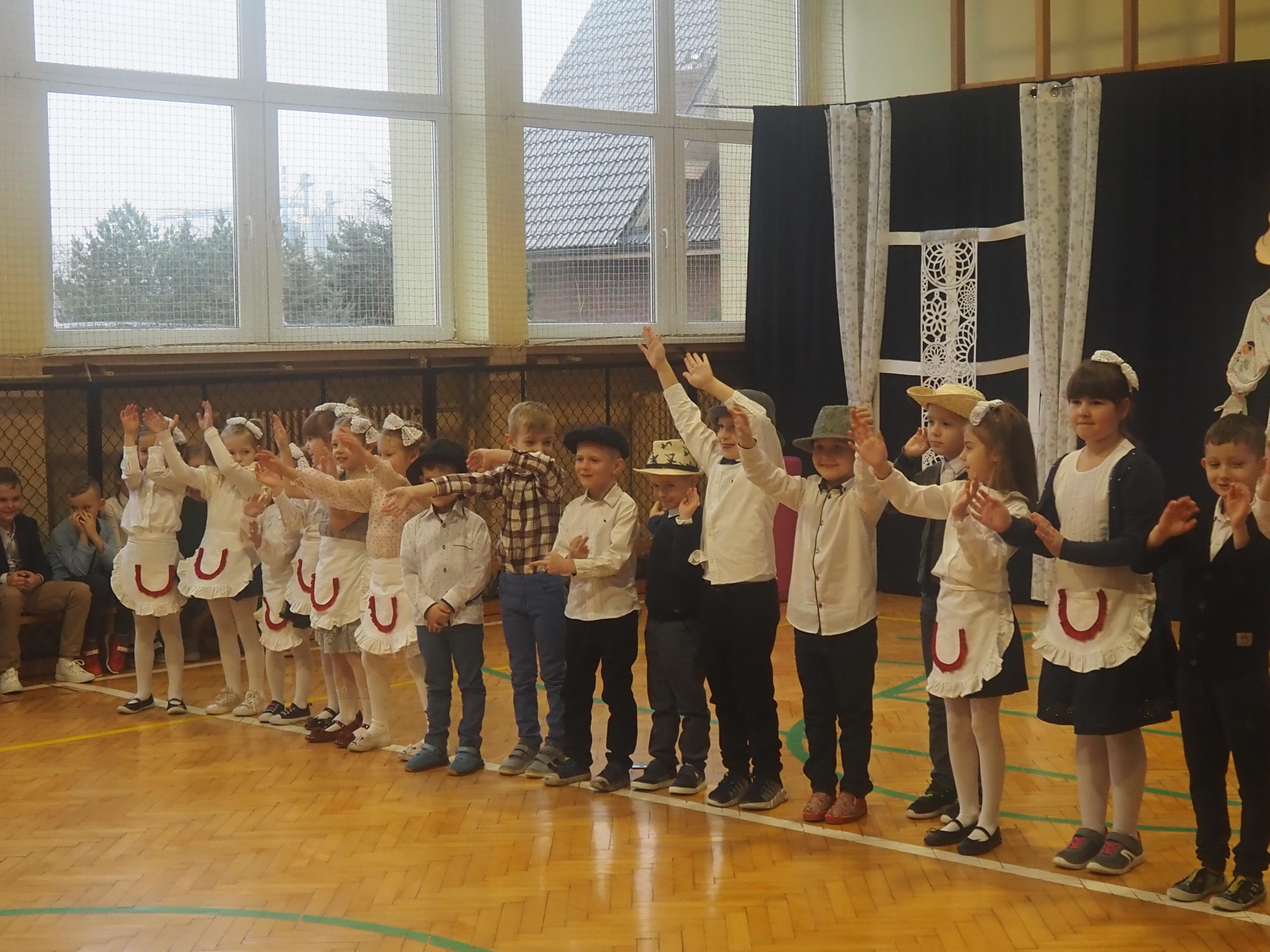 Przed tak wyjątkową widownią najpierw zaprezentowały się dzieci z oddziału przedszkolnego pod przewodnictwem wychowawczyni p. Edyty Waszak. Najmłodsi przedstawili kilka humorystycznych ciekawostek, zatańczyli, zaśpiewali, a także troszkę powspominali. Następnie uczniowie z klasy I przygotowani przez wychowawczynią p. Agnieszkę Janczak poprzez wierszyki wyrazili ogrom miłości do babć i dziadków. Pierwszak i przedszkolaki wykonały również taniec przypominający młodzieńcze zabawy dziadków - mini tango. Dzieci z klasy III pod czujnym okiem wychowawczyni p. Anny Balcerzyk przygotowały przedstawienie pt. „Tadek - Niejadek”. Była to niezwykle zabawna historia z Babcią i Dziadkiem w roli głównej. Trzecioklasiści stworzyli również akompaniament do wspólnego tańca z przedszkolakami. Z kolei uczniowie z klasy II wraz z wychowawczynią p. Martą Czerkawską zaprosili kochane Babcie i kochanych Dziadków do obejrzenia teleturnieju pt. „Babcia i Dziadek roku”. Po emocjonującym pojedynku okazało się, że ten zaszczytny tytuł przyznano każdej Babci i każdemu Dziadkowi. Tę niezwykłą uroczystość umilała cudowna grupa taneczna pod kierunkiem p. Edyty Waszak. Dzieci z niezwykłą gracją oraz muzykalnością zaprezentowały: układ taneczny „Góry do góry”, interpretację utworu „Nic dwa razy się nie zdarza” oraz taniec „Tarantela”.