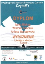 W II kategorii wyróżnienie zdobyły uczennice klasy IV- Ivetta Biskup, Wiktoria Sobczak, Anissa Warszewska, które wykonały komiks.