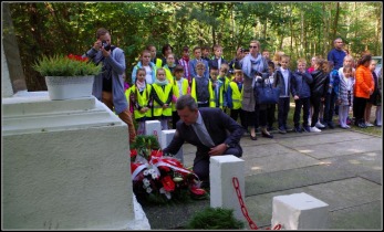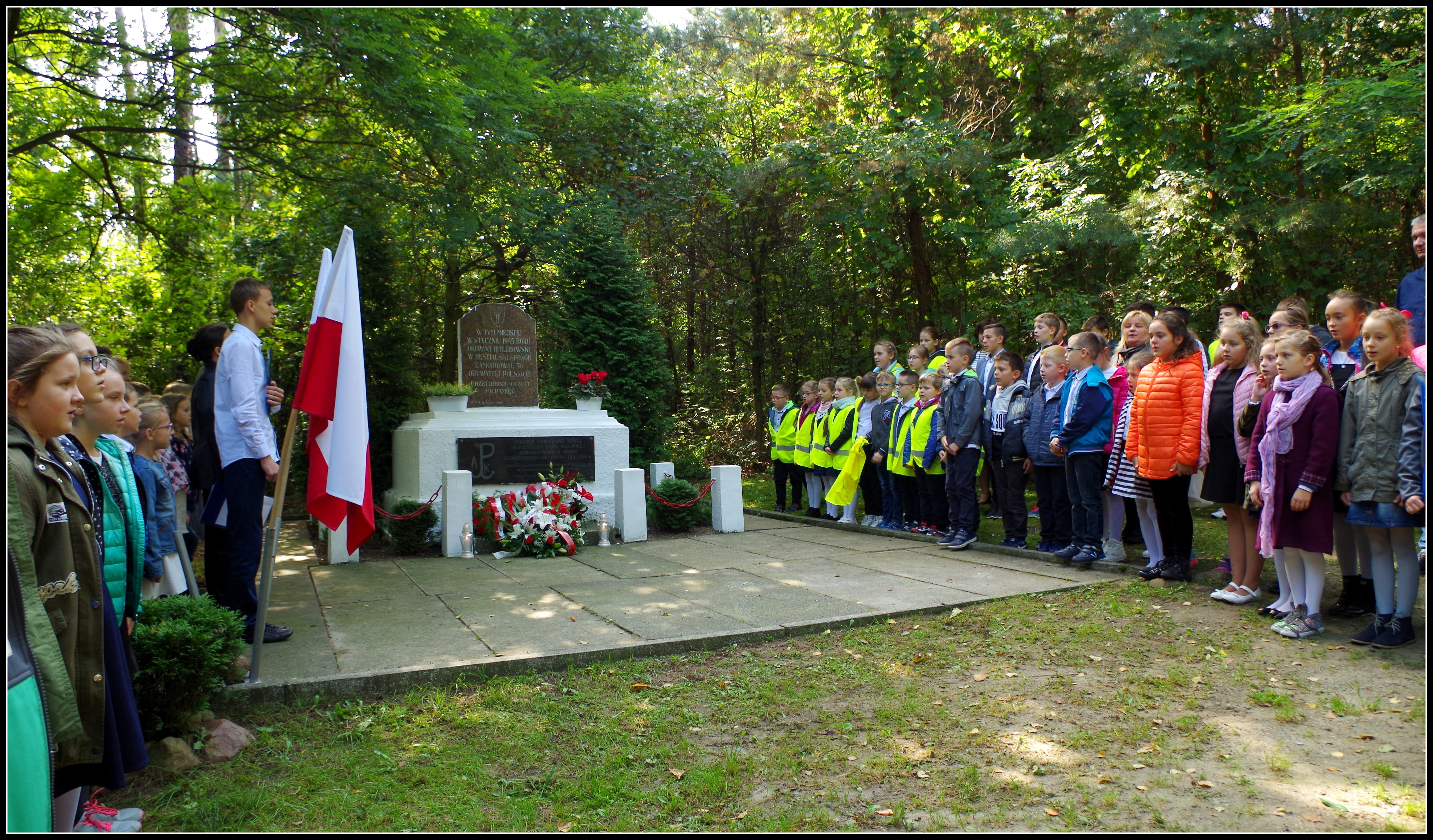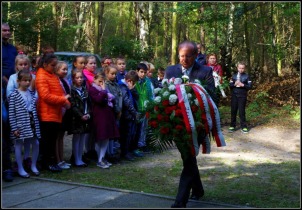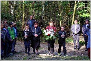 Kolejnym punktem uroczystości było składanie kwiatów i zapalanie zniczy w Miejscu Pamięci w lesie w Skarszewie. W uroczystości udział wzięli: dyrekcja, nauczyciele, wszyscy uczniowie i pracownicy szkoły. Przybyli również goście, którzy swoją obecnością, uświetnili wydarzenie. Minuta ciszy, krótka historia Armii Krajowej, zapalone znicze, wiązanki kwiatów i wspólne odśpiewanie hymnu państwowego, dodały uroczystości wyjątkowego charakteru.