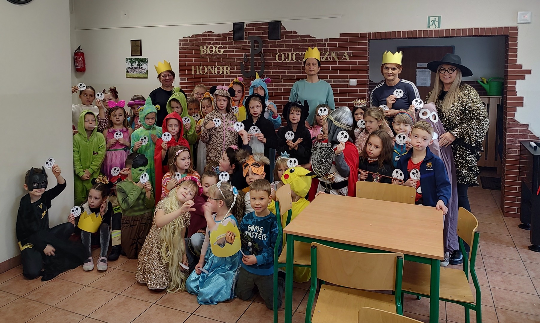 W dniu 14 listopada nasza szkoła zamieniła się w magiczną krainę, pełną bajkowych postaci z okazji obchodów Dnia Postaci z Bajek. Szkolne korytarze zamieniły się w zaczarowaną krainę pełną fantazji i uśmiechu. Dzieci z oddziału przedszkolnego oraz klas 1-3 z dumą prezentowały swoje kreatywne stroje, od klasycznych postaci, jak Czerwony Kapturek, przez księżniczki i rycerzy, po współczesnych superbohaterów, np. Spider-Mana. Dlaczego warto świętować Dzień Postaci z Bajek? To doskonała okazja do promowania czytelnictwa i zachęcania dzieci do sięgania po książki. W tym dniu pierwszoklasiści otrzymali książki w ramach kampanii " Mała książka- wielki człowiek". Jest to zaproszenie pierwszoklasistów do odbycia niezwykłej przygody, jaką jest umiejętność rozpoznawania liter, składania ich w wyrazy i zdania, a w końcu przyjemność czerpania z lektury wspólnie z dorosłymi lub samodzielnie. Co ważne, badania udowodniły, że dzieci regularnie czytające dla przyjemności mają większe szanse niż inni uczniowie na skuteczną naukę i osiąganie dobrych wyników w szkole. Czytanie wzbogaca słownictwo, rozwija umiejętność swobodnego myślenia i wypowiadania się na różne tematy. Szkolny samorząd wspólnie z Panią bibliotekarką przygotowali tym dniu niespodzianki dla najmłodszych i zachęcali do sięgania po lektury. Dzieci otrzymały odznaki z okazji Dnia Postaci z Bajek, kolorowanki oraz zapoznały się ze znanymi bajkowymi cytatami. To był fajny dzień z magiczną atmosferą, która pozwoliła nam na chwilę przenieść się do świata wyobraźni!