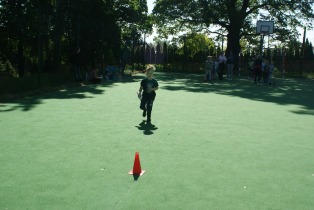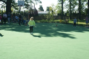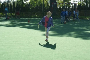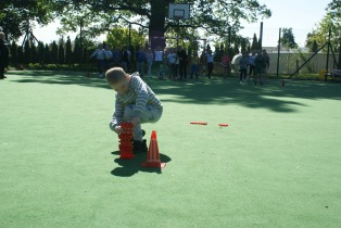 Pozostali uczniowie z klas IV-VII na boisku szkolnym zmagali się z pokonaniem sprawnościowych torów przeszkód: