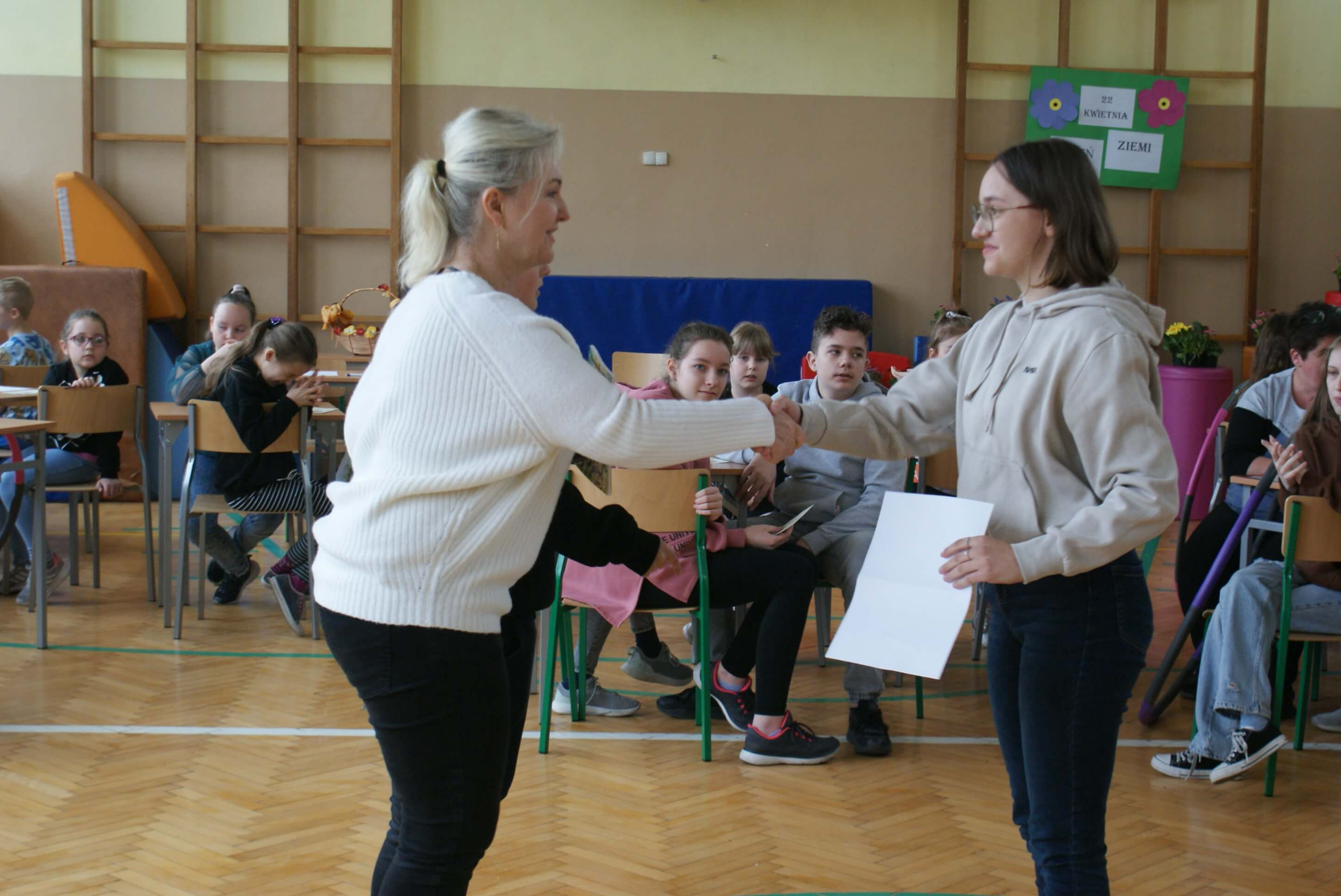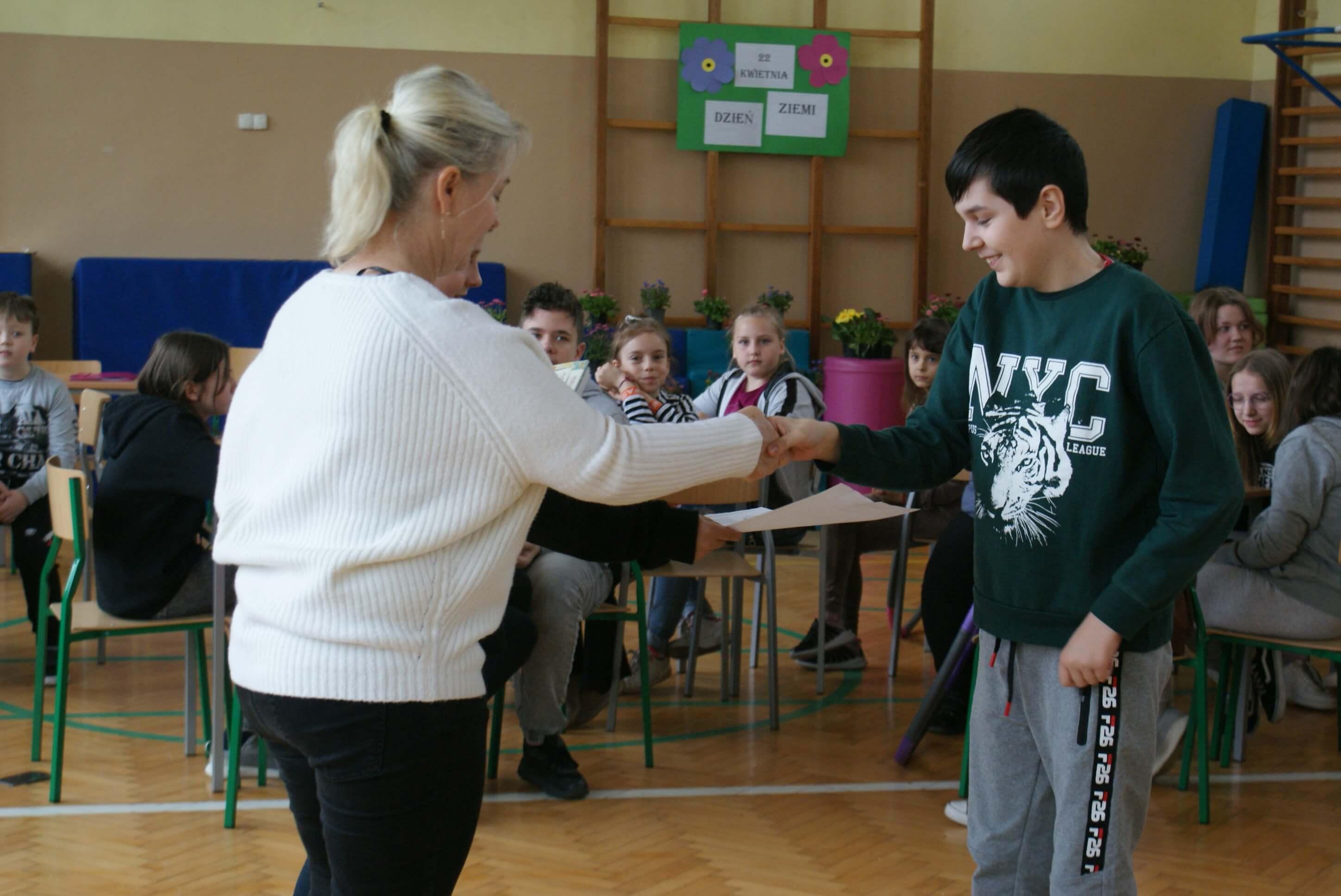 O godz.9.30 odbyło się podsumowanie imprezy, rozdanie dyplomów uczniom za udział w konkursach, losowanie nagród za prawidłowo rozwiązane krzyżówki oraz wspólne śniadanie.Obchody Dnia Ziemi uświetniły występy uczniów laureatów etapu szkolnego III Gminnego Konkursu Recytatorsko-Inscenizatorskiego pt. „ Harce z klasykiem”.