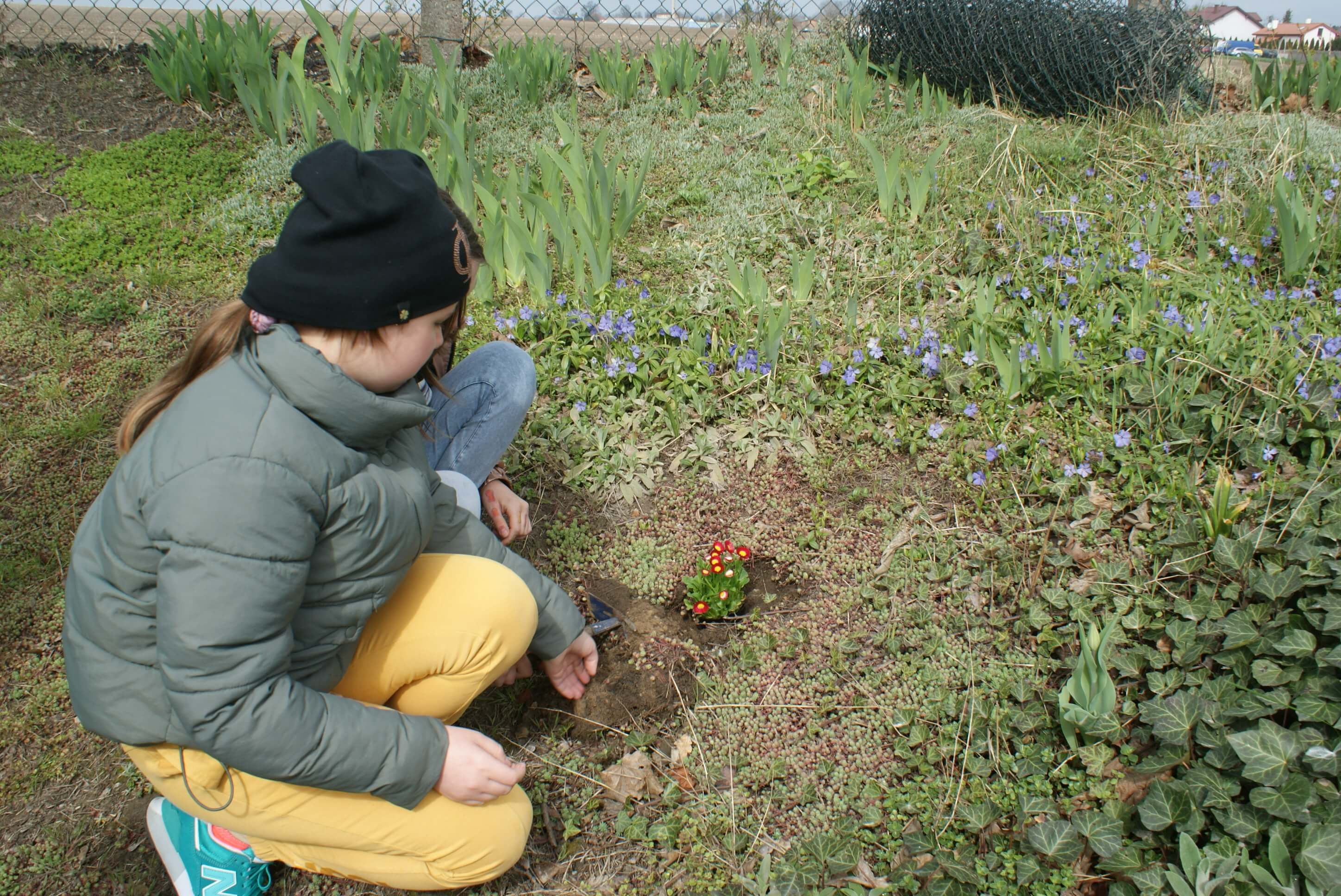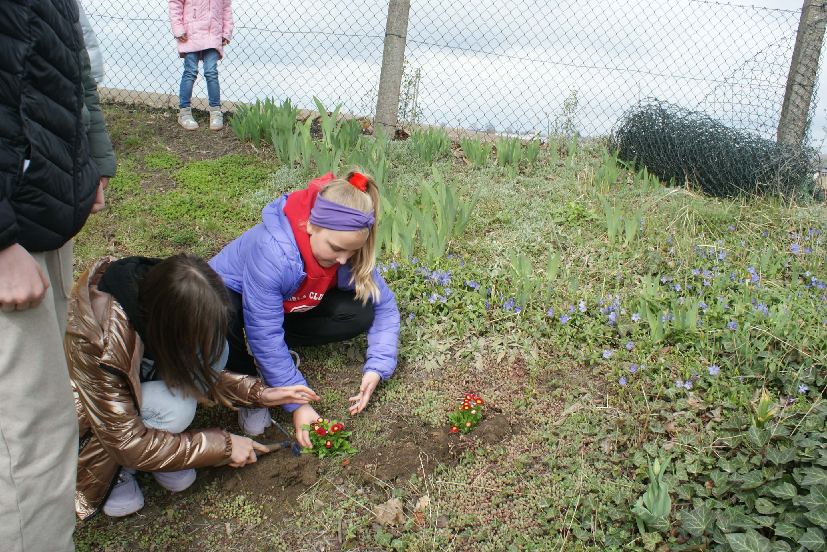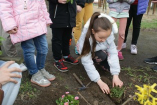 W dniach 20-21.04.2022 uczniowie kl.0-VIII przynieśli sadzonki roślin na rabatki przed szkołą, które zostały posadzone przez wybranych uczniów 22.04.2022 pod opieką pani Anny Sałaty.