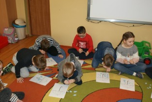 Zadania miały na celu ćwiczenie aparatów artykulacyjnych: warg i języka. Dzieci pracowały tez nad prawidłowym torem oddechowym. Dmuchając na kartki papieru sprawdzały, czy prawidłowo oddychają. Słuchając opowiadania „Sowa sprząta swoje mieszkanie”, dokładnie usprawniliśmy swoje buzie. Rozluźnieni i przygotowani do pięknej wymowy przystąpiliśmy do dalszej części zajęć, w której ćwiczenia artykulacyjne zostały połączone z zajęciami logorytmicznymi. Uczniowie maszerowali w takt piosenki „Ludowa poleczka”, pamiętając