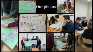 Następnie uczniowie wraz nauczycielką przygotowali plakaty, które przedstawiały co to jest bullying-przemoc w szkole i jak mozna sobie radzić z agresją rówieśników. Uczniowie czytali na platformie Twinspace artykuły o przemocy. Oglądali filmy, w których poznali sposoby radzenia sobie z przemocą wobec siebie i innych rówiesników w szkole. Również w ramach projektu wypełnili ankietę na temat przemocy i tolerancji w szkole, poznając jakie formy mogą one przyjąć.