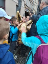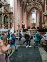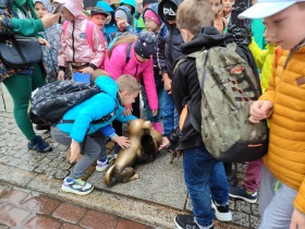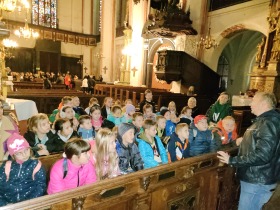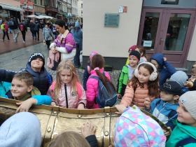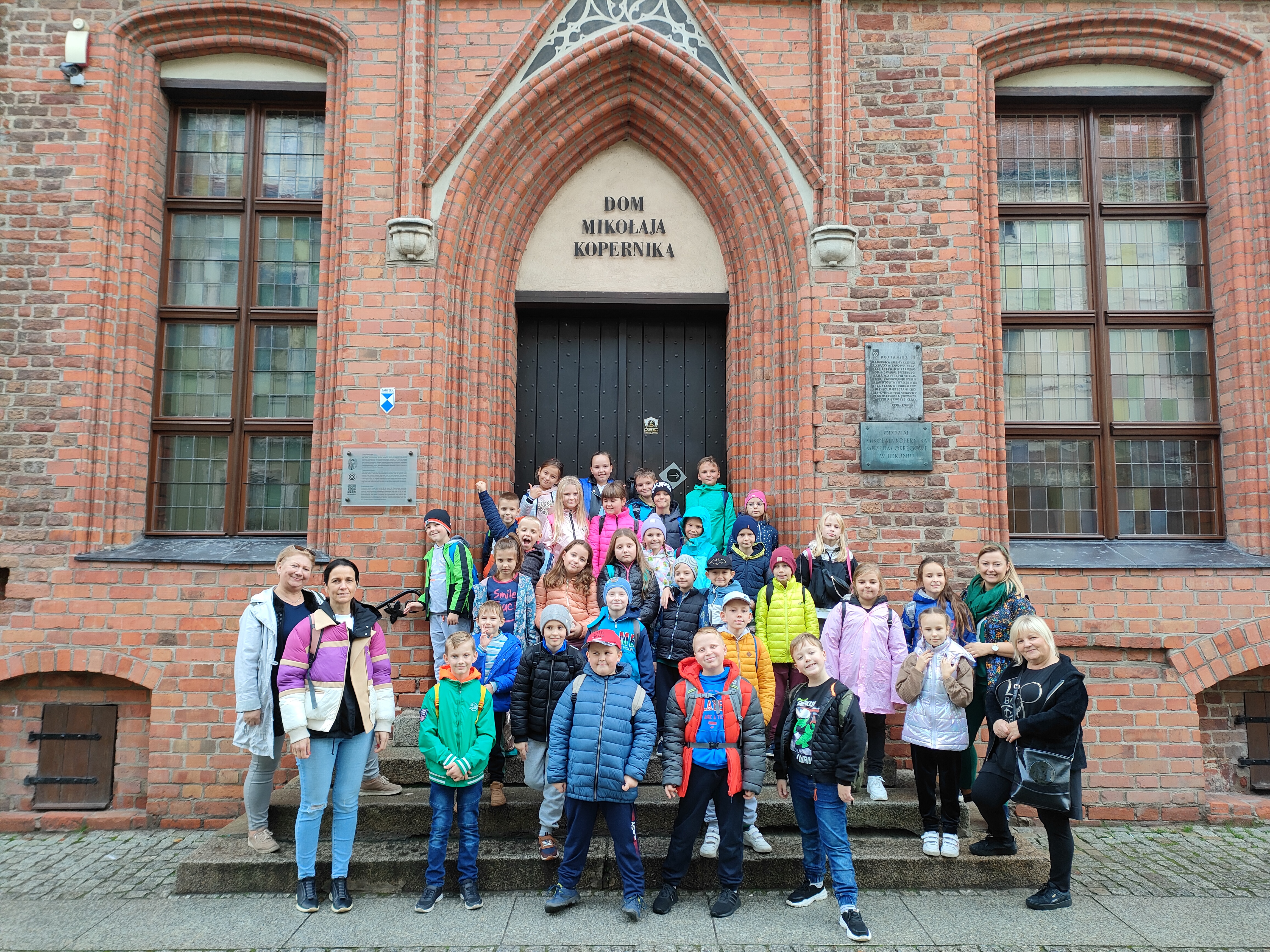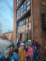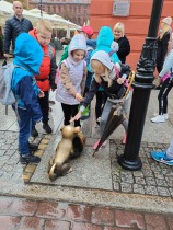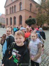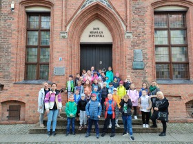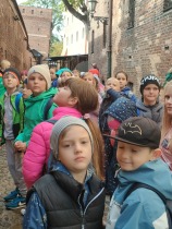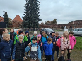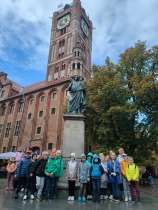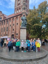 W dniu 25 października 2022 r. 30 uczniów z klas 1-3 wraz z opiekunami uczestniczyło w wycieczce do Torunia. Pierwszym punktem programu wycieczki był seans w Centrum Popularyzacji Kosmosu Planetarium Toruń. Siedząc wygodnie w fotelach oglądaliśmy seans. Nad naszymi głowami pojawiały się tysiące gwiazd wędrujących w różnych porach roku i kosmiczne animacje. Z wielkim zainteresowaniem wysłuchaliśmy wielu ciekawostek astronomicznych. Następnie wraz z przewodnikiem wyruszyliśmy na spacer po Starym Mieście. Obejrzeliśmy Krzywą Wieżę, zabytkowe kościoły, mury obronne, Ratusz. Udaliśmy się pod Dom Kopernika. Wykonaliśmy pamiątkowe zdjęcia pod pomnikiem tego sławnego Polaka. Spacerowaliśmy Piernikową Aleją Gwiazd. Mijaliśmy Dwór Artusa, pomnik Flisaka oraz zabytkowe kamienice. Wiele radości sprawiły spotkania z toruńskimi żabkami, pieskiem i osiołkiem. Ten dzień był fantastyczny! Bawiliśmy się doskonale, zajadaliśmy słynne toruńskie pierniki, a przy tym poznaliśmy zabytki kultury oraz historii Torunia. To miejsce na długo pozostanie w naszej pamięci, a będą nam je przypominały zdjęcia i zakupione pamiątki.