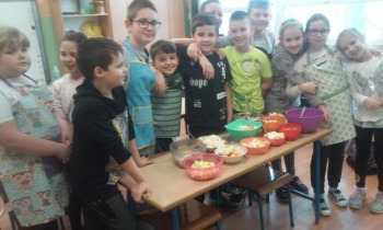 W czasie naszych działań kulinarnych wszyscy bardzo dobrze się bawiliśmy. Było dużo śmiechu. Uczniowie zgodnie stwierdzili, że lubią pracować w kuchni i będą pomagać mamom w pracach kulinarnych.