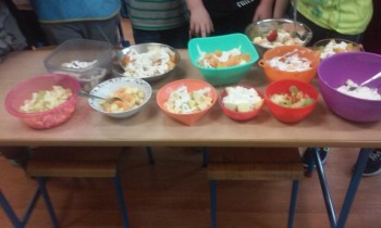 Zaangażowanie dzieci w pracę przy wypiekach i sałatkach zachęciło nas do dalszych działań. Po zimowym odpoczynku będziemy robić soki owocowo- warzywne.