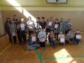 Uczniowie otrzymali pamiątkowe dyplomy i puchary oraz słodki poczęstunek.