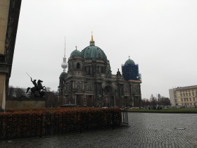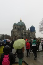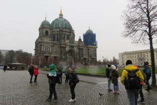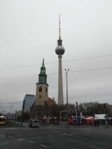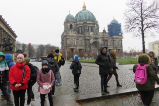 Zwiedzanie Berlina z przewodnikiem rozpoczęliśmy od placu Aleksandra, na którym stoi najwyższy w Unii Europejskiej budynek: wieża telewizyjna z obrotową kawiarnią, Następnie przeszliśmy pod Czerwony Ratusz, potem posłuchaliśmy wiadomości o Kościele Mariackim, który jest najstarszym czynnym kościołem w Niemczech, przechodziliśmy "Aleją Pod Lipami". Kilkakrotnie przekraczaliśmy mosty na rzece Sprewa, byliśmy na wyspie muzeów oraz przy pomniku ku pamięci matek synów poległych podczas
