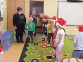 Przywitał Nas ciepłym słowem i podarunkami. A My odwdzięczyliśmy się piosenką i uśmiechem.