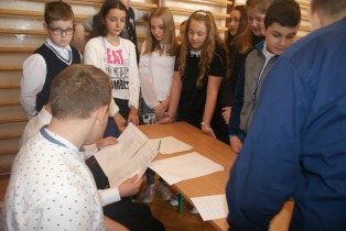 Uczniowie krótko przedstawili historię odzyskania przez Polskę niepodległości i zaprosili wszystkie klasy do rozwiązania quizu niepodległościowego, który zawierał 9 zadań. Mieli za zadanie m. in. odgadnąć tytuły polskich piosenek, umieścić na mapie miasta Polski, dopasować zdjęcia bohaterów historycznych do krótkich opisów, stworzyć z puzzli postać Józefa Piłsudskiego, ułożyć wiersz Kto ty jesteś, Polak mały czy dopasować przysłowia. Duże zainteresowanie wzbudziło rozwiązywanie zagadek o Polsce.