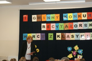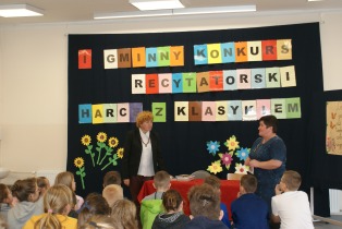Tego dnia w naszej szkole odbył się I Gminny Konkurs Recytatorki „Harce z klasykiem”, które swoją obecnością uświetniła kaliska poetka. Pani Urszula Zybura pełniła rolę jednego z jurorów. Po konkursie miało miejsce spotkanie autorskie uczniów nasze j szkoły z aforystką. W dowcipny, a czasem nieco ironiczny sposób, Pani Zybura opowiadała o sobie, swojej twórczości, zainteresowaniach, a także recytowała fragmenty swoich wierszy. Udzielała odpowiedzi na zadawane przez uczniów pytania, wzbogacając je anegdotami ze swojego życia. Na prośbę uczniów zaprezentowała fragment utworu w języku esperanto, do nauki którego zachęciła młodzież. Następnie zwróciła się do uczniów w języku rosyjskim, czym zaskarbiła sobie ich podziw.