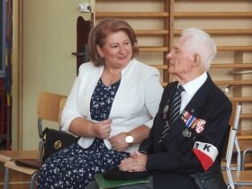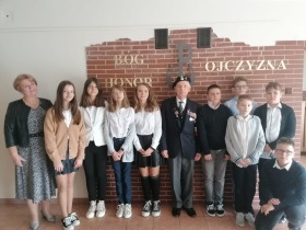 Mieliśmy też ogromną przyjemność poznać żołnierzy Armii Krajowej, którzy co roku odwiedzali naszą szkołę. Co roku byli i są oni najważniejszymi gośćmi naszych uroczystości. Jest to major w stanie spoczynku Kazimierz Wiktorowicz ps. „Dąbrowa”, Prezes Światowego Związku Żołnierzy Armii Krajowej w Kaliszu. Pan Kazimierz opowiada ze wzruszeniem o powstaniu i organizacji Polskiego Państwa Podziemnego oraz o czasach okupacji i Armii Krajowej. Często naszym gościem był też Mieczysław Wiśniewski, członek 5 Pułku Strzelców Podhalańskich Armii Krajowej. Działał z bronią w ręku przy Przełęczy Dukielskiej i był jednocześnie dowódcą drużyny sanitarnej. Chętnie dzielił się z nami swoimi przeżyciami z czasów młodości związanej z działaniami Armii Krajowej. W czasie swojego bogatego życia Mieczysław Wiśniewski otrzymał liczne wyróżnienia, takie jak Krzyż Kawalerski Orderu Odrodzenia Polski, Brązowy i Złoty Krzyż Zasługi, Krzyż Armii Krajowej i Krzyż Partyzancki. Pożegnaliśmy go w kwietniu 2023 roku.