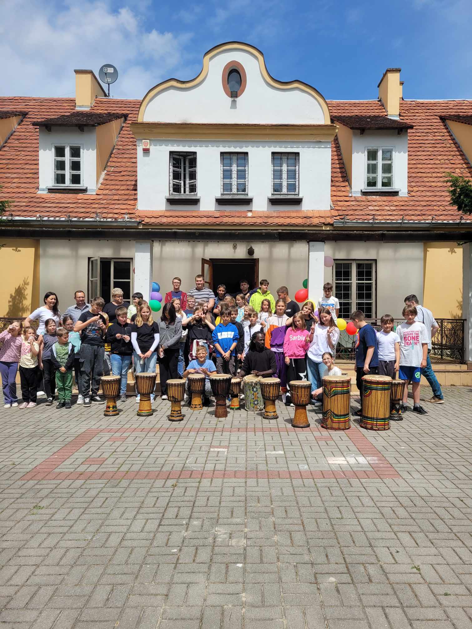 12 czerwca uczniowie klasy piątej mieli przyjemność wziąć udział w pikniku połączonym z warsztatami bębniarskimi, które poprowadził mistrz w sztuce gry na bębnach, znakomity artysta afrykański, Gaspard Conde. Sami też mieli przyjemność pograć na afrykańskich bębnach i pośpiewać z muzykiem. Dzieciaki przywitał również przyjaciel dzieci król Julian. Atmosfera była pełna radości i uśmiechów, a cały dzień obfitował w niezapomniane chwile. Uczniowie pograli w piłkę, zjedli przepyszne lody i drożdżówki. Ponadto mogli też poznać lub spotkać się z koleżanki i kolegami z innej szkoły na terenie gminy Żelazków. To było udane przedpołudnie dzięki pomocy rodzicom, którzy dowieźli swoje pociechy do Szkoły Podstawowej w Biernatkach. Dziękuję bardzo za pomoc.