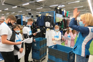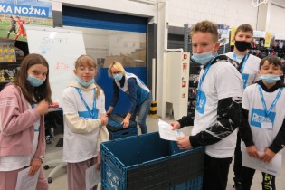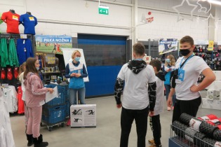 W dniu 8 grudnia nasi uczniowie wzięli udział w wycieczce do sklepu Decathlon, której głównym celem było kształtowanie wśród młodzieży właściwych postaw tj. dbałość o zdrowie i kondycję fizyczną, szlachetność i zaangażowanie społeczne. W ramach warsztatów prowadzonych przez pracowników sklepu Decathlon nasi uczniowie podzieleni zostali na cztery grupy i mieli do wykonania różnego rodzaju zadania np. jedna grupa poszukiwała wybranych produktów w sklepie (zgodnie z mapą i zaznaczonymi na niej punktami/ sektorami – to były świetne ćwiczenia orientacji w terenie zamkniętym i ćwiczenie rozwijające spostrzegawczość). Zadanie to było na czas, więc nie było łatwo, ale nasi nasze dziewczynki z kl 5 poradziły sobie wspaniale! Druga grupa miała do wydania określoną kwotę pieniędzy i miała zakupić np. sprzęt do uprawiania jazdy konnej. Były kalambury, mierzenie i dobieranie bezpiecznego kasku i roweru - do wysokości indywidualnej klienta, omówiono zasady bezpiecznego przemieszczania się rowerem i hulajnogą. Uczniowie mieli możliwość zapoznania się z działaniem nietypowych akcesoriów sportowych. Najwięcej radości sprawiły jednak, warsztaty sportowe i ćwiczenia praktyczne z zawodnikami klubu ENERGA MKS KALISZ z sekcji piłki ręcznej: Panem Kacprem Adamskim i Piotrem Krępa, którzy stwierdzili, iż wśród naszej młodzieży da się wyłonić parę talentów sportowych. Na koniec były wspólne zdjęcia, słodycze, napoje i owoce. Każde dziecko otrzymało bilet wstępu na mecz ENERGA MKS Kalisz, pamiątkową koszulkę i smycz.