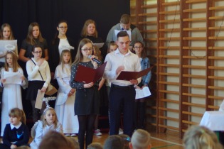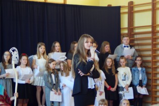 Szczególnymi brawami zostały nagrodzone występy najmłodszych uczniów naszej szkoły, które przywołały uśmiechy na twarzach słuchaczy.