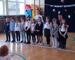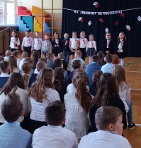 Ponadto dzisiejszy dzień był wyjątkowy, ponieważ również wszyscy uczniowie wzięli udział w Akademii i - jak powiedziała Pani Dyrektor- stali się bohaterami podczas wspólnego spotkania. Każda klasa bowiem musiała wybrać i przygotować jedną z pieśni wojskowych, które następnie uczniowie odśpiewali podczas Akademii. Pomagali wszyscy nauczyciele i oczywiście wychowawcy.