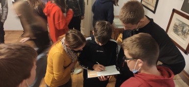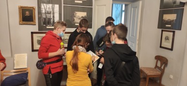 Ostatnią atrakcją w Rogalinie była lekcja historii przez zabawę i rozwiązywanie quizów o rodzinie Raczyńskich, dogłębnych szczegółach z ich życia oraz wydarzeniach historycznych. Cała grupa była podzielona na czteroosobowe zespoły, które zdobywały punkty.