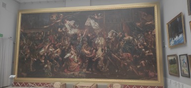 Kolejnym, a zarazem ostatnim miejscem, w jakie się udaliśmy w Rogalinie, była znajdująca się w południowym skrzydle zachwycająca galeria obrazów. Składa się ona z kilku sal, w których wywieszone jest mnóstwo dzieł. Tworzą one jedną z najwspanialszych kolekcji współczesnego malarstwa na ziemiach polskich, liczącą prawie 500 dzieł sztuki.