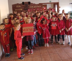 „Szkolne Walentynki” , jak nakazuje tradycja, obchodziliśmy w dzień imienin świętego Walentego tj. 14 lutego. Oddział przedszkolny i klasy od I do IV świętowały ten dzień przebraniem na czerwono. Młodsi uczniowie, którzy uczyli się stacjonarnie w szkole mogli w tym dniu wysłać „walentynkową kartkę z serduszkiem” do kolegi, koleżanki lub ulubionego nauczyciela. Walentynkowa skrzynka w zerówce u Pani Edyty szybko się zapełniła, a rozdanie kartek już wkrótce. Starsi uczniowie, którzy w tym czasie korzystali ze zdalnego nauczania mieli możliwość przygotowania w domu (własnoręcznie) kartki walentynkowej z życzeniami w języku angielskim. Mogły to być wiersze o miłości i przyjaźni, fragmenty poezji czy prozy o tematyce związanej z miłością i relacjami międzyludzkimi w języku angielskim! Samorząd szkolny ogłosił konkurs na najpiękniejszą i najciekawszą kartkę walentynkową. Zbiórka prac już po 21 lutym, jak tylko wrócimy stacjonarnie do szkoły, a rozstrzygnięcie konkursu na początku marca. Liczymy na Wasze oryginalne pomysły!