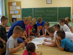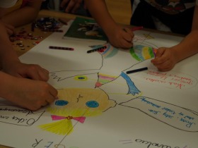 Podsumowaniem spotkania z „Karolcią” było wykonanie przez dzieci plakatu zachęcającego do przeczytania tej powieści.