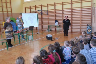 Była to bardzo ciekawa lekcja kulturoznawcza, ponieważ Pan Tomasz Zawal jako wolontariusz pracujący w Kamerunie i Sudanie Północnym opowiedział o trudnościach życia codziennego w Afryce, o problemach z wodą i chorobach nękających mieszkańców tej części świata. Uczniowie mieli szansę obejrzeć bardzo interesującą prezentację i krótkie filmiki o obyczajach, nawykach żywieniowych i kulturze mieszkańców Sudanu, którzy żyją w bardzo trudnych warunkach. Dowiedzieli się również, w jakie zabawy bawią się ich rówieśnicy w Afryce i czy edukacja jest tak szeroko dostępna jak u nas. Czasami warto poznać trudne życie innych, by docenić to co nam oferuje życie na co dzień!!! Dużą ciekawostką okazały się także, tradycyjne stroje noszone przez kobiety i mężczyzn z Sudanu ( zaprezentowane przez Pana Tomasza) i własnoręcznie wykonane przez dzieci zabawki; okazuje się, że dzieci afrykańskie potrafią zrobić „coś z niczego” i są bardzo kreatywne.