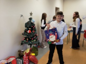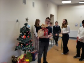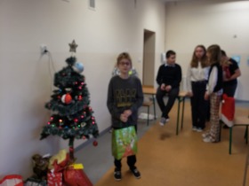 Na stołach zamiast zeszytów i książek pojawiły się potrawy przygotowane przez uczniów i rodziców m.in. pierogi z kapustą i grzybami, kapusta z grochem, ryba po grecku, makiełki, ciasto brownie, piernik, sałatka warzywna i owoce. Pod choinką pojawiły się prezenty. Śpiewaliśmy kolędy, łamaliśmy się opłatkiem. Był dziś również czas na swobodne rozmowy, na integrację, na gry i na budowanie relacji. Wigilia to oczekiwanie na Boże Narodzenie to czas nadziei i radości. Chcielibyśmy aby ta nadzieja i ta radość w sercu towarzyszyły nam przez cały okres Świąt i także w każdym kolejnym dniu. Życzymy Państwu i sobie wytrwałości w pielęgnowaniu nadziei i radości, która dziś gości naszych sercach.