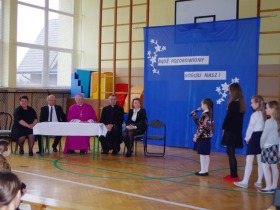 7 marca 2018 roku naszą szkołę odwiedził JE Ks. Biskup Łukasz Buzun. Po powitaniu przez Panią Dyrektor, przedstawicieli Urzędu Gminy, Rady Rodziców i Samorządu Uczniowskiego, wszyscy uczniowie przywitali Księdza Biskupa radosną piosenką. Dzieci bardzo uroczyście i poważne w tym dniu przygotowały pytania na które Ksiądz Biskup chętnie odpowiadał. Dzięki temu dowiedzieliśmy się, co lubił gdy był małym chłopcem i jak wygląda jego codzienność. Uczniowie pod opieką Pani Katechetki przygotowali także wiersze.