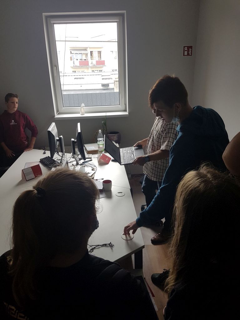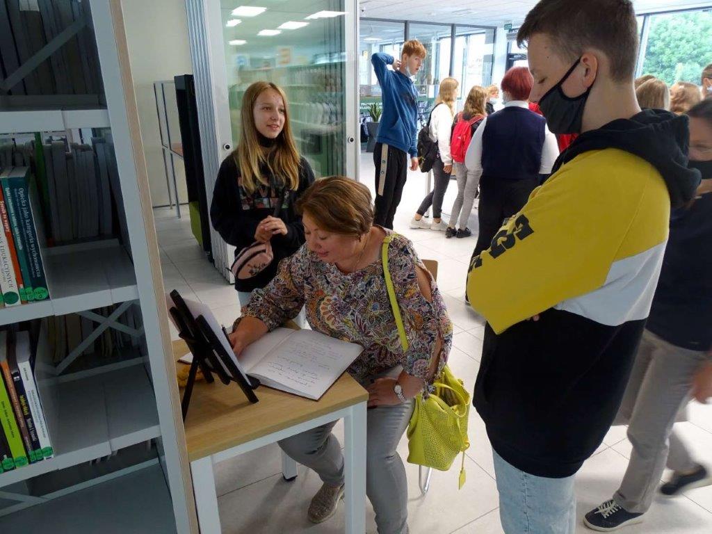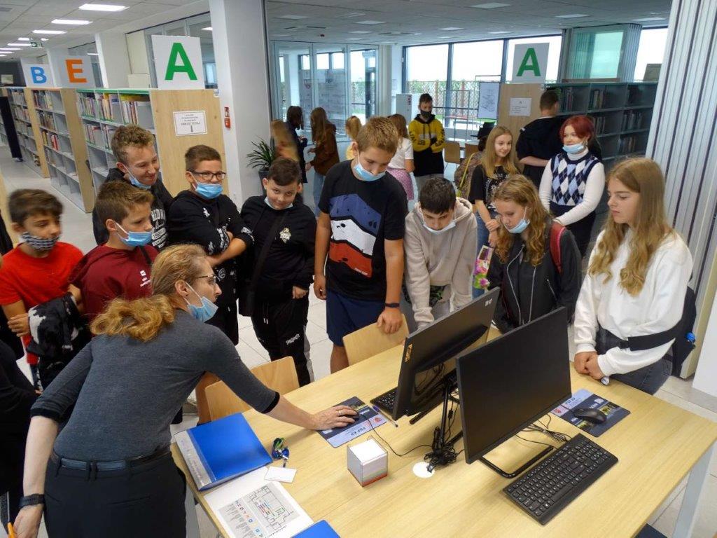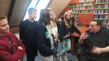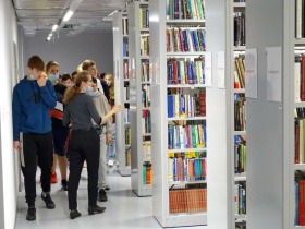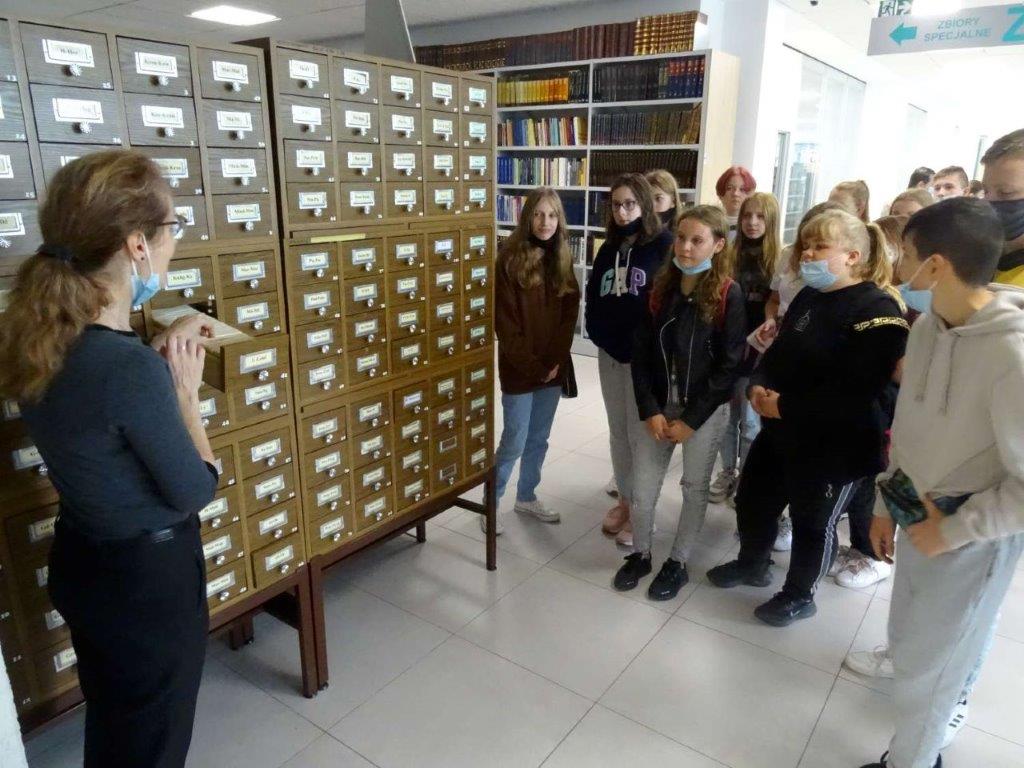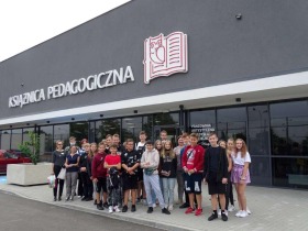 Na początku pojechaliśmy do największej biblioteki w mieście, czyli do Książnicy Pedagogicznej im. A. Parczewskiego. Została ona wybudowana niecały rok temu, a w swoim zbiorze ma blisko 200 tys. książek. Mieliśmy okazję zajrzeć do zakamarków Książnicy. Dowiedzieliśmy się co to są katalogi biblioteczne i w jaki sposób się je tworzy oraz jak konserwowane są książki. Odwiedziliśmy również ogromny magazyn literatury.