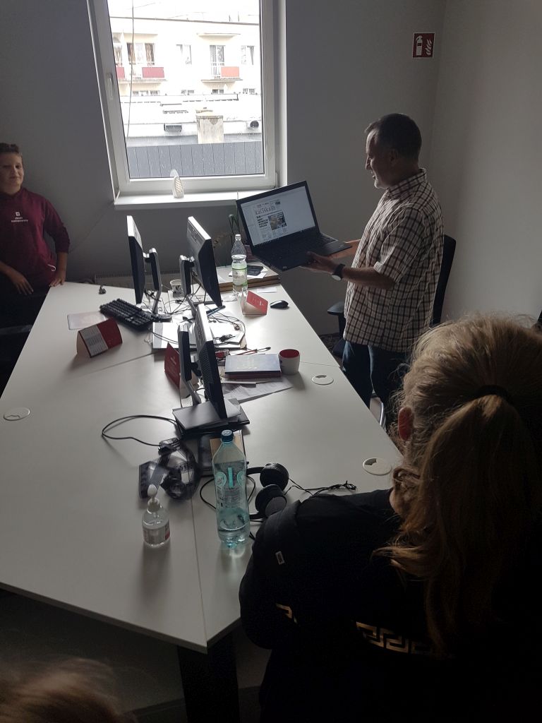 Ostatnim miejscem, w jakie się udaliśmy, była redakcja gazety Ziemi Kaliskiej. Dowiedzieliśmy się tutaj jaką drogę pokonuje gazeta zanim trafi do odbiorców. Redaktor naczelny, Mariusz Kurzajczyk, z którym przeprowadziliśmy wywiad, opowiedział nam o początkach swojej pracy oraz o tym, jak wygląda jego dzień, a także o historii gazety.